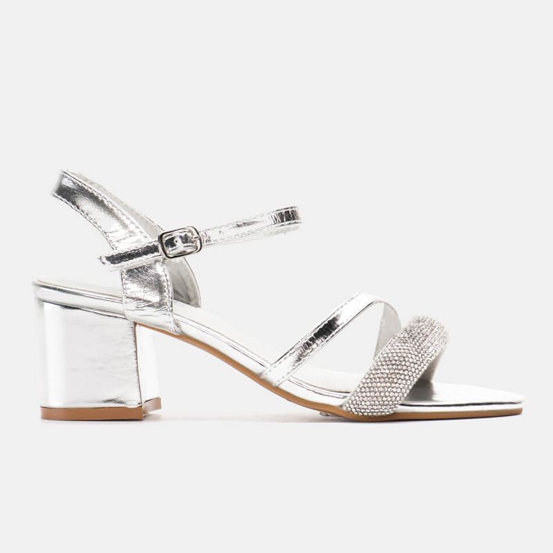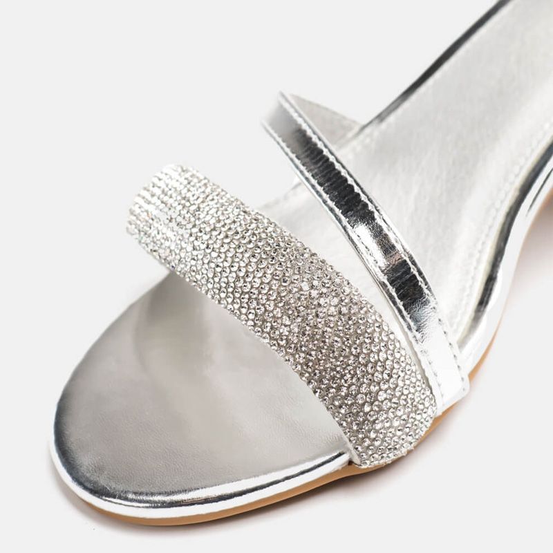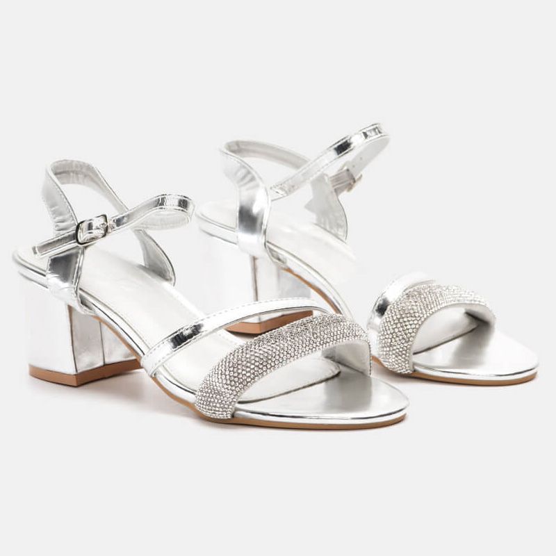 Πέδιλα Με Στρας Και Μεσαίο Τακούνι My Choice LL-1198 Ασημί