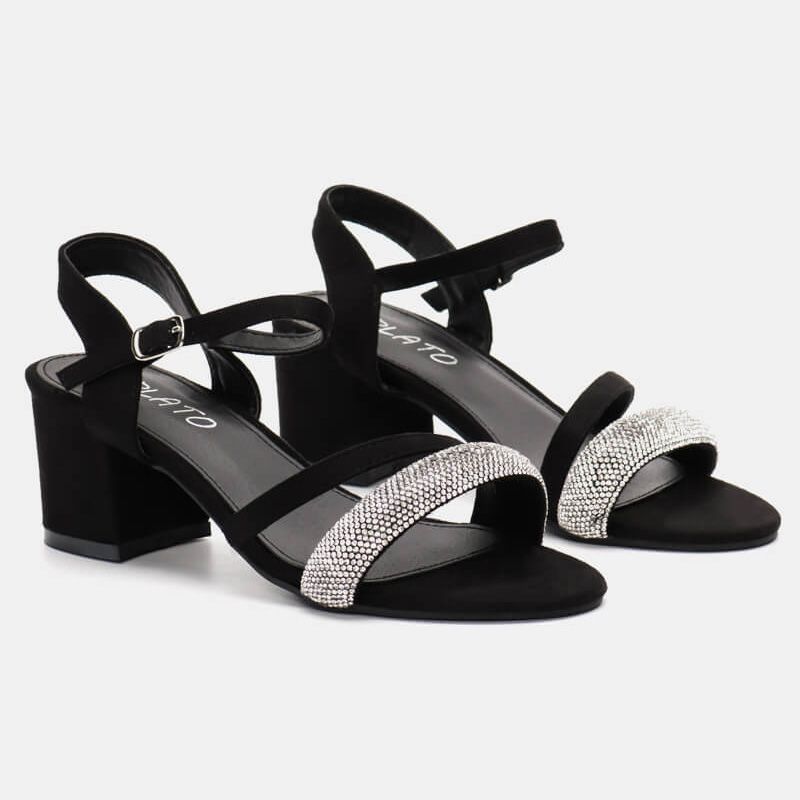 Πέδιλα με μεσαίο τακούνι και διακοσμητικά στρας. Μία κομψή επιλογή που θα σας προσφέρει άνεση και στυλ σε κάθε έξοδο.
