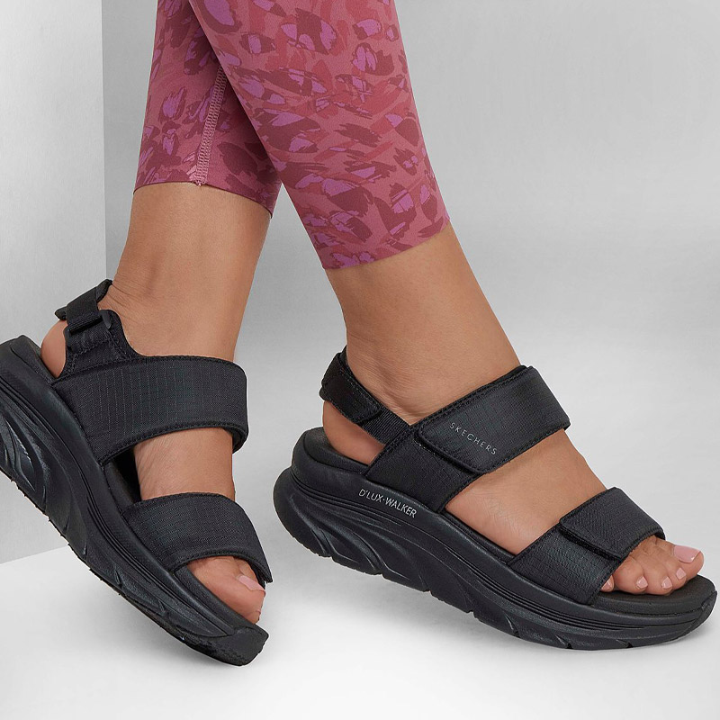 Πέδιλο της Skechers με άνω μέρος από ύφασμα υψηλής ποιότητας σε μαύρο χρώμα. Διαθέτει μαλακό πάτο Skechers Luxe Foam και συμπαγή εξωτερική σόλα. Ένα κομψό και ελαφρύ πέδιλο για άνεση στις καλοκαιρινές βόλτες.