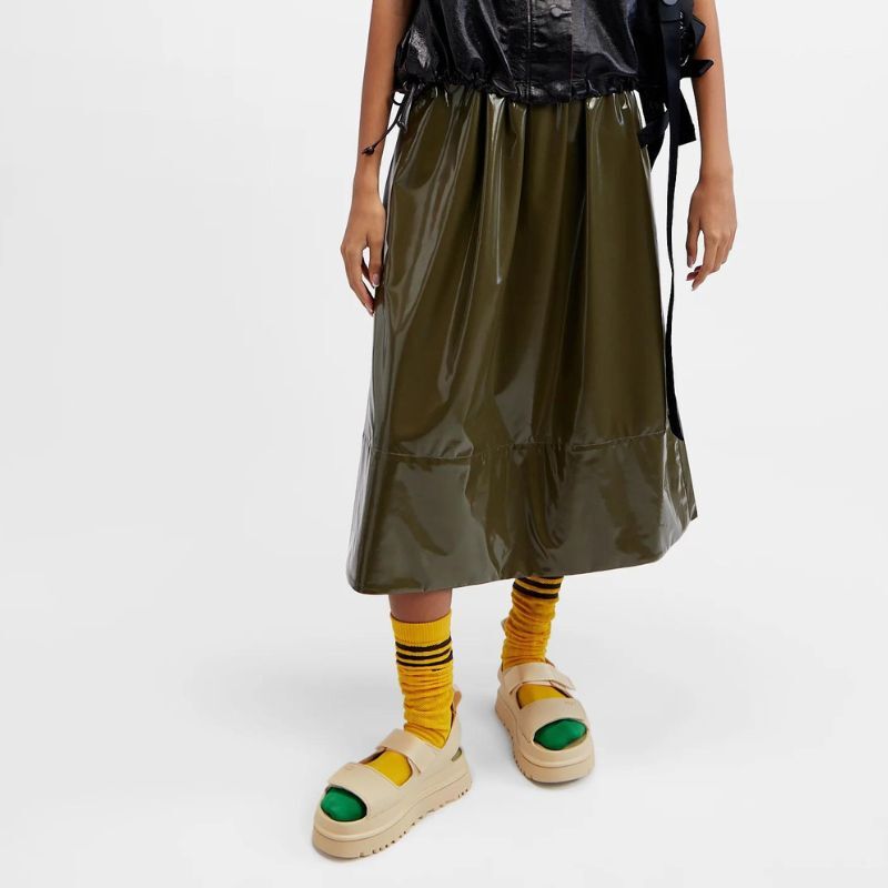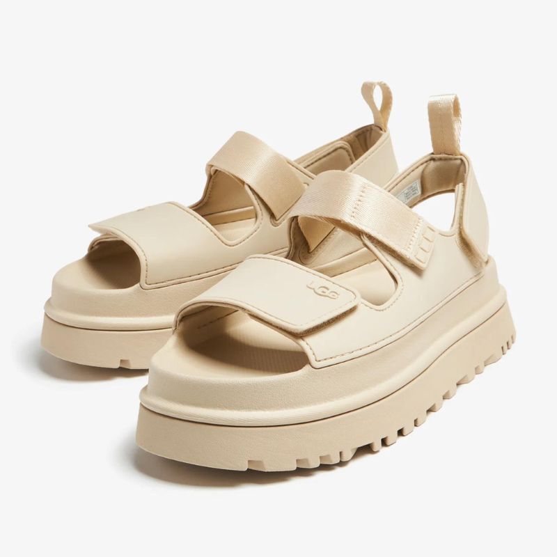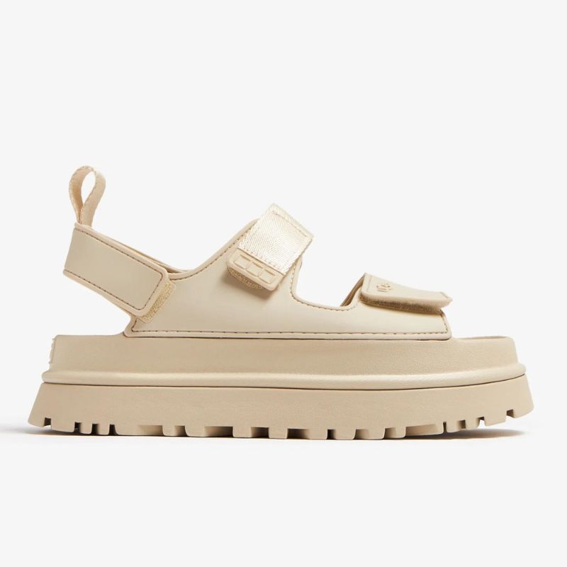 Το Ugg γυναικείο σανδάλι σε μπεζ χρώμα διαθέτει ύψος σόλας 4.5εκ. Έχει πίσω γλωττίδα έλξης κατασκευασμένη από 100% ανακυκλωμένες ίνες πολυεστέρα και κλείσιμο με γάντζο και βρόχο. Ο ιμάντας είναι κατασκευασμένος από 100% ανακυκλωμένες ίνες πολυεστέρα, ενώ το ύφασμα της επάνω επένδυσης είναι κατασκευασμένο από τις ίδιες ανακυκλωμένες ίνες πολυεστέρα. Η ενδιάμεση σόλα είναι ζαχαροκάλαμου EVA, ενώ η εξωτερική σόλα είναι από Sugarcane EVA.