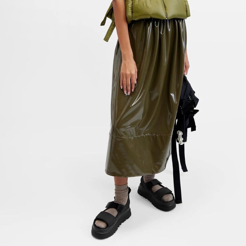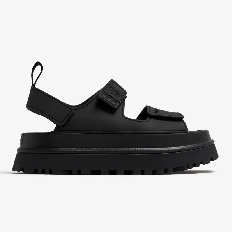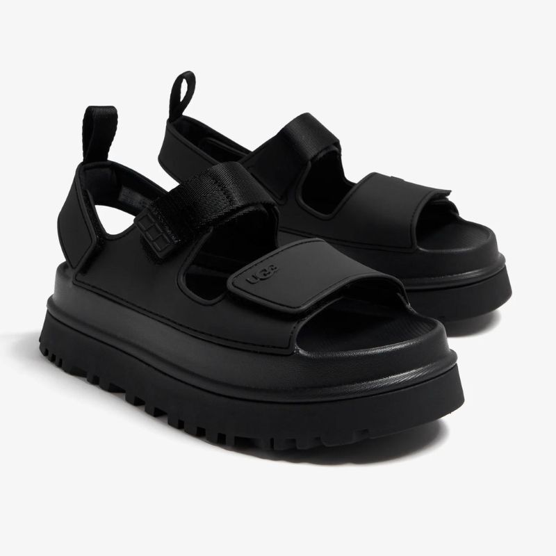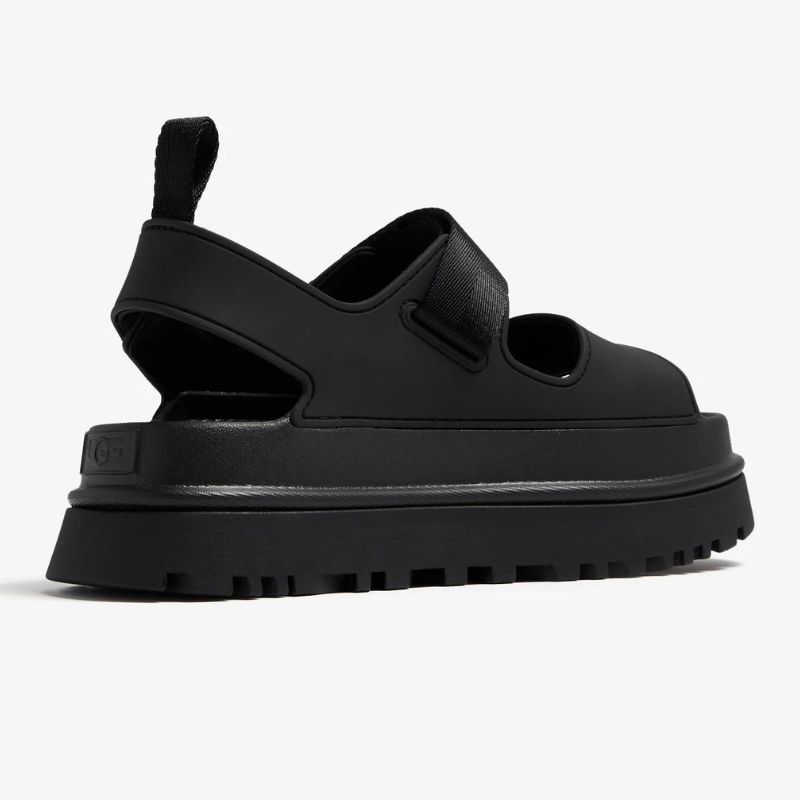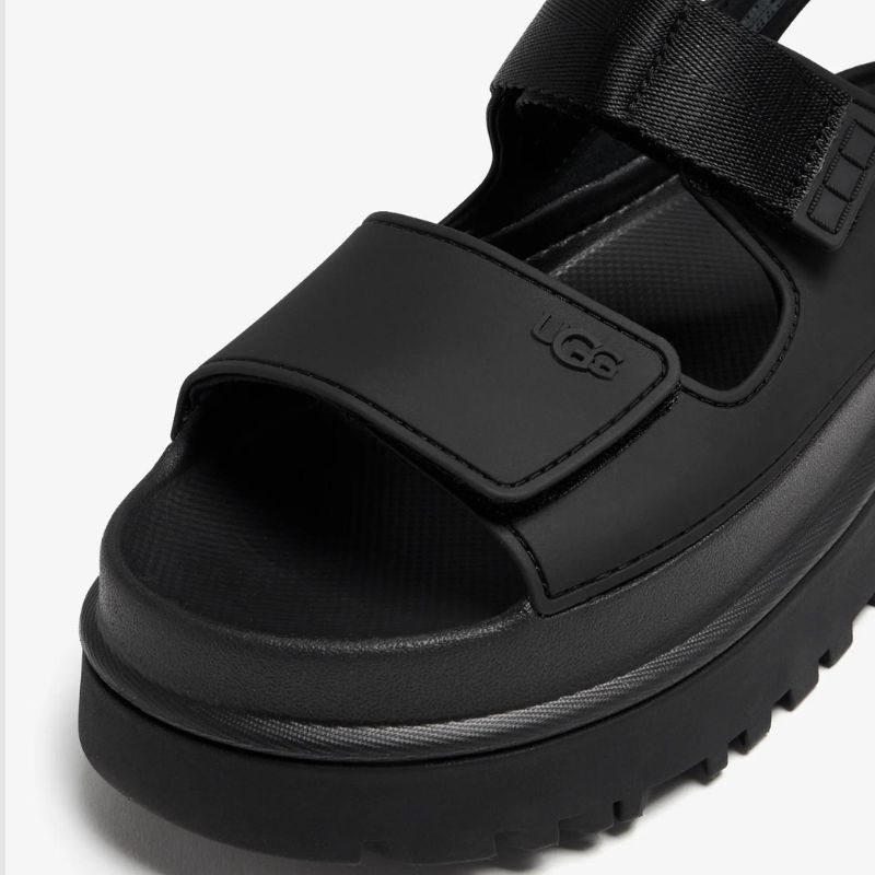 Το Ugg γυναικείο σανδάλι σε μαύρο χρώμα διαθέτει ύψος σόλας 4.5εκ. Έχει πίσω γλωττίδα έλξης κατασκευασμένη από 100% ανακυκλωμένες ίνες πολυεστέρα και κλείσιμο με γάντζο και βρόχο. Ο ιμάντας είναι κατασκευασμένος από 100% ανακυκλωμένες ίνες πολυεστέρα, ενώ το ύφασμα της επάνω επένδυσης είναι κατασκευασμένο από τις ίδιες ανακυκλωμένες ίνες πολυεστέρα. Η ενδιάμεση σόλα είναι ζαχαροκάλαμου EVA, ενώ η εξωτερική σόλα είναι από Sugarcane EVA.