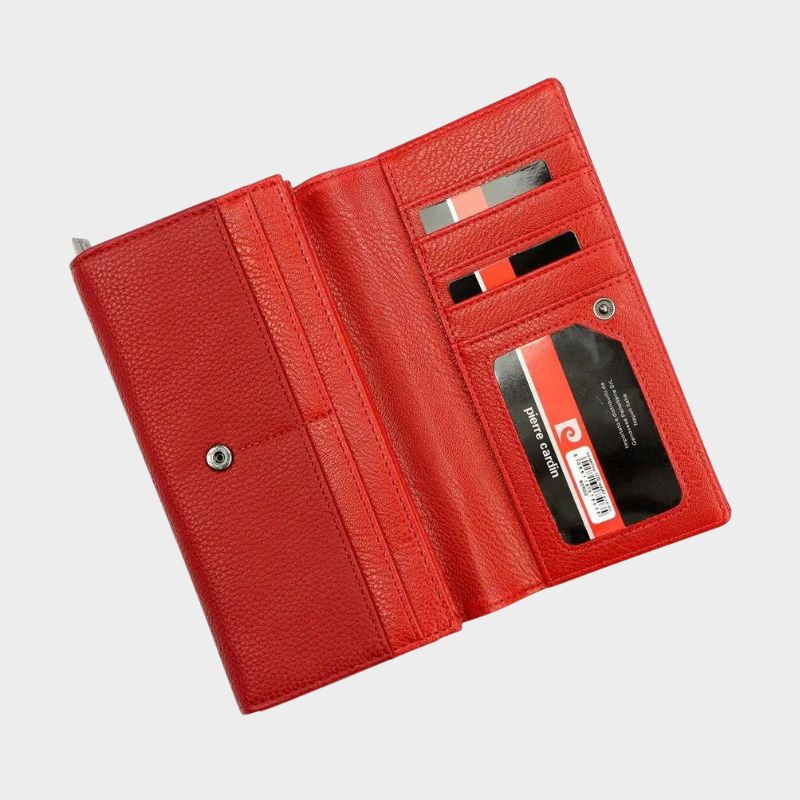 Πορτοφόλι από οικολογικό δέρμα με ανασηκωμένο λογότυπο Pierre Cardin και σχέδιο γραμμής. Ανοίγει εύκολα με ένα κουμπί, αποκαλύπτοντας έναν μεγάλο οργανωμένο χώρο με ειδικές θήκες για πιστωτικές κάρτες, προσωπικά έγγραφα, τραπεζογραμμάτια και μια εύχρηστη τσέπη με φερμουάρ για τα μετρητά και τα κέρματά σας. Κομψότητα και λειτουργικότητα σε ένα μόνο αξεσουάρ.
