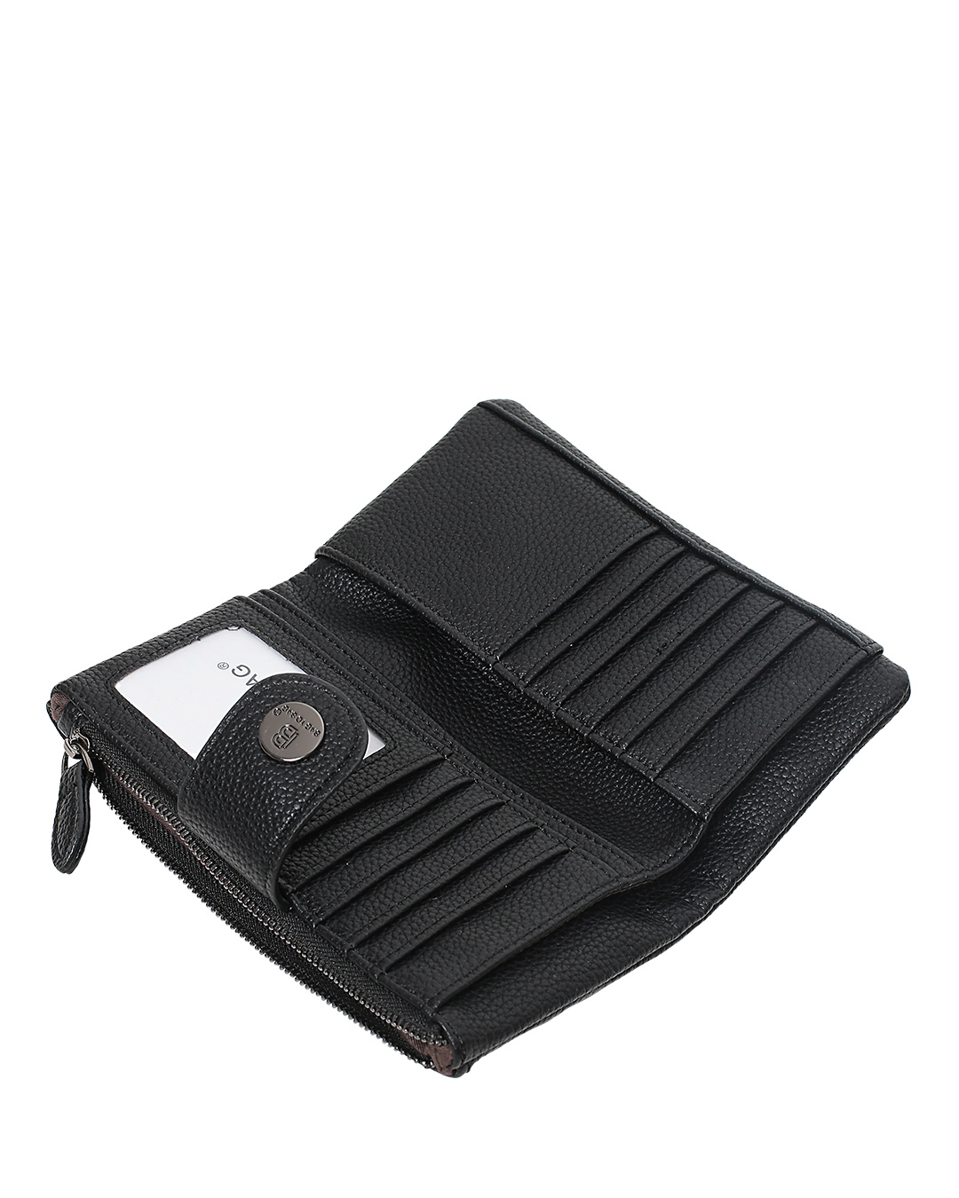 Πορτοφόλι από υψηλής ποιότητας τεχνόδερμα.Αποτελείται από έναν κύριο χώρο που κλείνει με φερμουάρκαι κούμπωμα με κουμπί.Εσωτερικά διαθέτει θήκες για κάρτες.