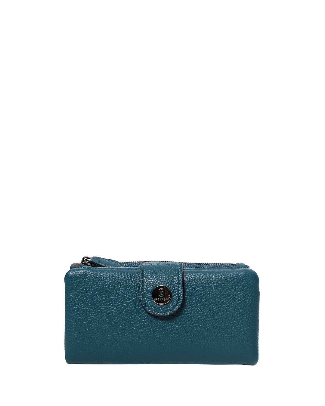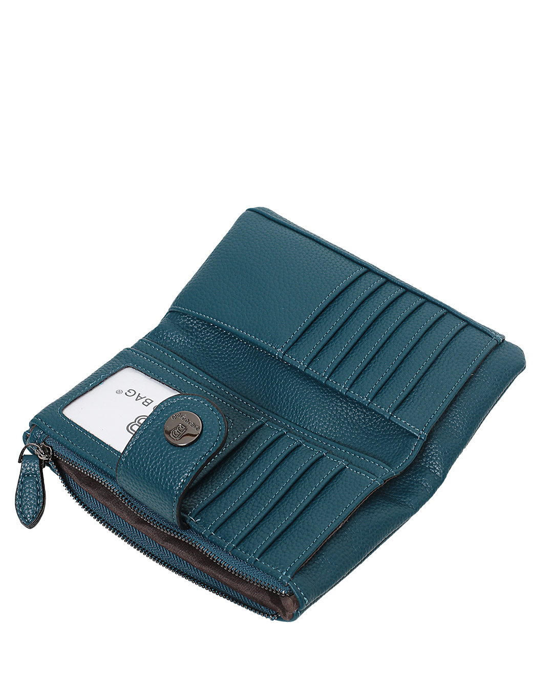 Πορτοφόλι από υψηλής ποιότητας τεχνόδερμα.Αποτελείται από έναν κύριο χώρο που κλείνει με φερμουάρκαι κούμπωμα με κουμπί.Εσωτερικά διαθέτει θήκες για κάρτες.