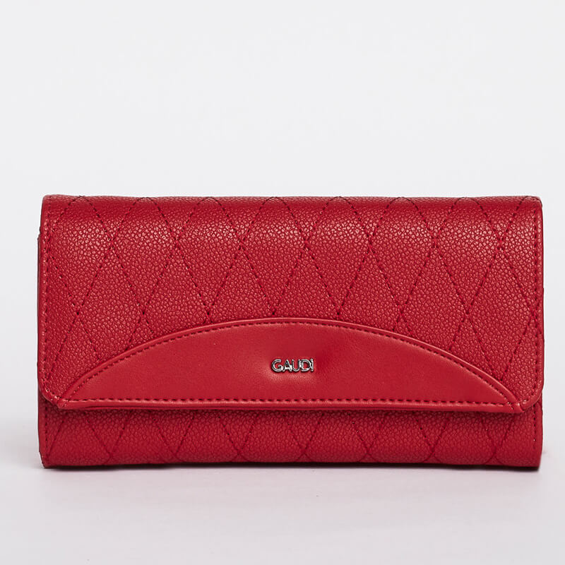 Πορτοφόλι της Gaudi από οικολογικό δέρμα σε κόκκινο χρώμα με χρυσή αλυσίδα.
