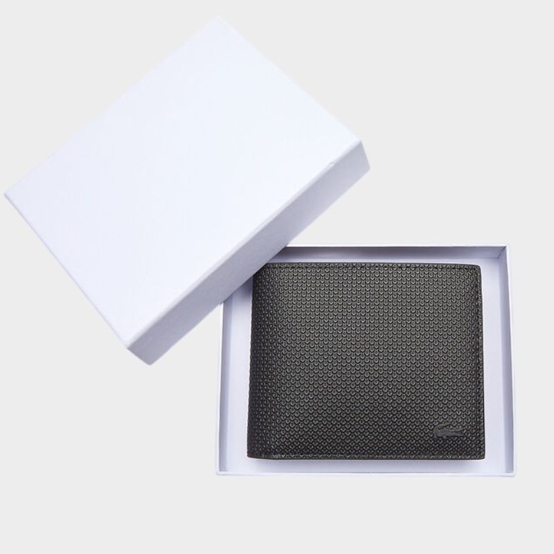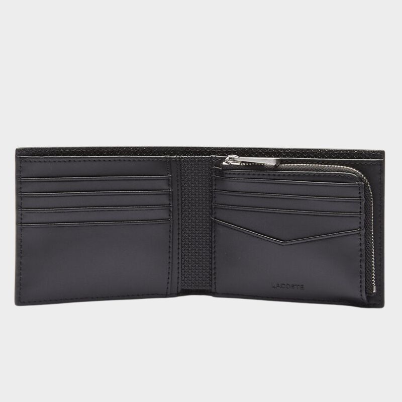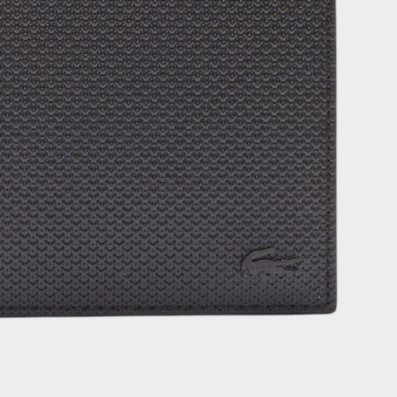 Μικρό πορτοφόλι της Lacoste από ιταλικό δέρμα pique σε μαύρο χρώμα.