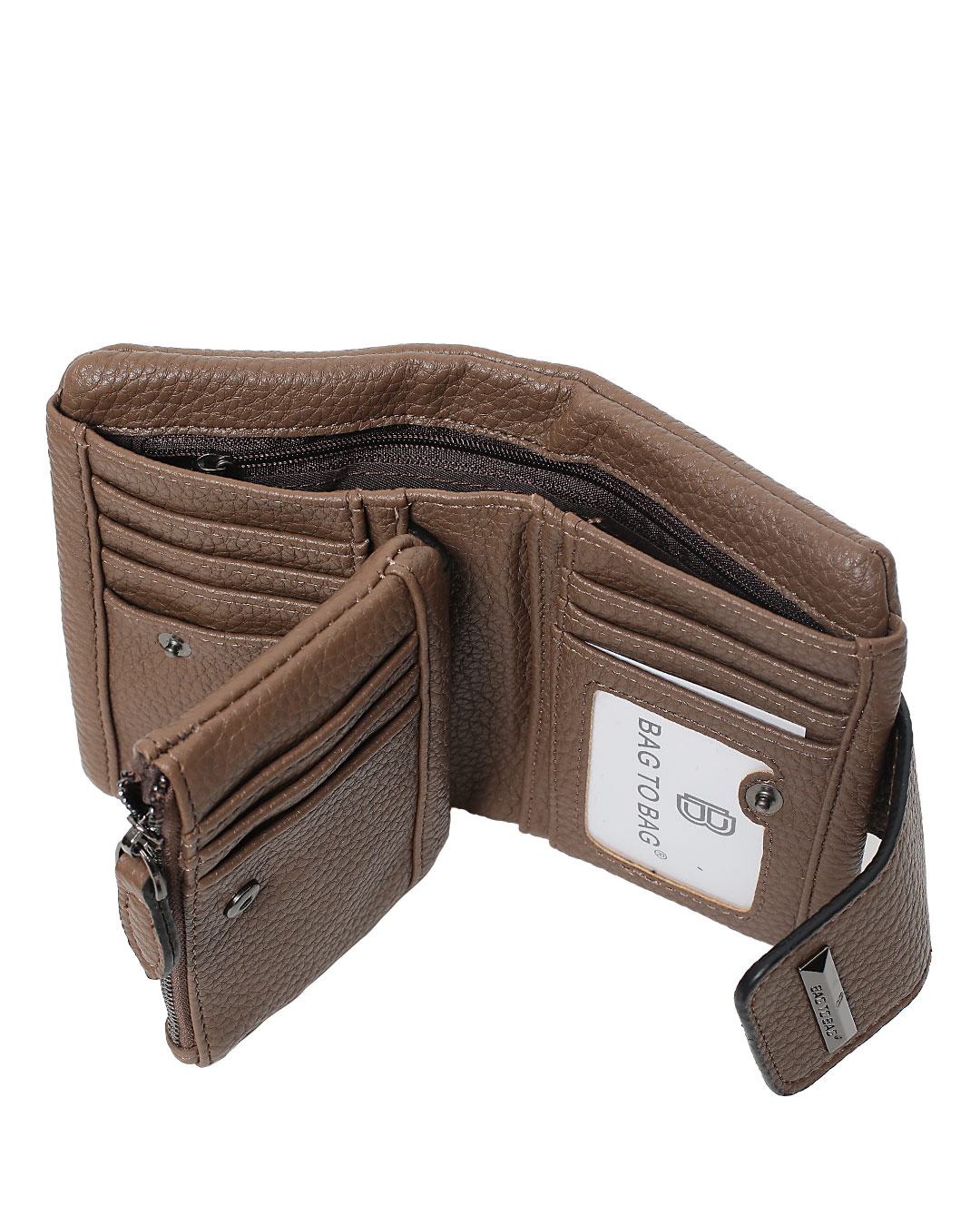 Πορτοφόλι μικρό από υψηλής ποιότητας τεχνόδερμα.Αποτελείται από έναν κύριο χώρο που κλείνει με φερμουάρκαι κούμπωμα με κουμπί.Εσωτερικά διαθέτει θήκες για κάρτες.