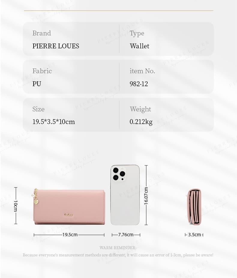– Δομή – Το γυναικείο μακρύ πορτοφόλι Pierre Loues διαθέτει άφθονο χώρο, 1 κύρια θήκη με μαγνητικό κούμπωμα, εσωτερικά χωρίσματα μαζί με μια θήκη φερμουάρ στο εσωτερικό, αρκετές θέσεις για κάρτες , καλύπτοντας τις ανάγκες σας για καθημερινές δραστηριότητες.
