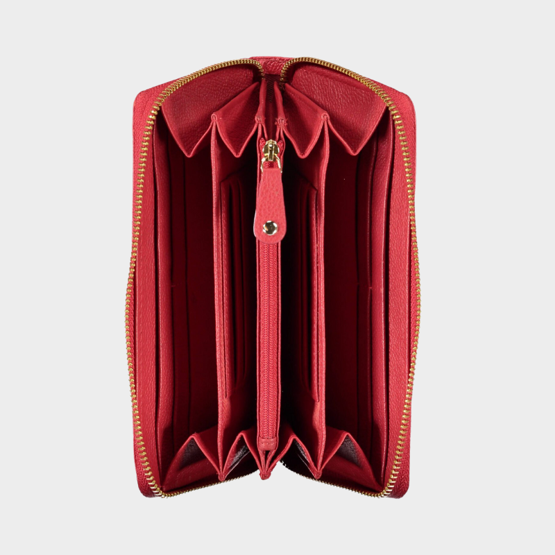 Υλικό: Συνθετικό δέρμα – πορτοφόλι 6 θέσεων – θήκη για κέρματα – εσωτερικοί χώροι για κάρτες – κλείσιμο με φερμουάρ – λογότυπο