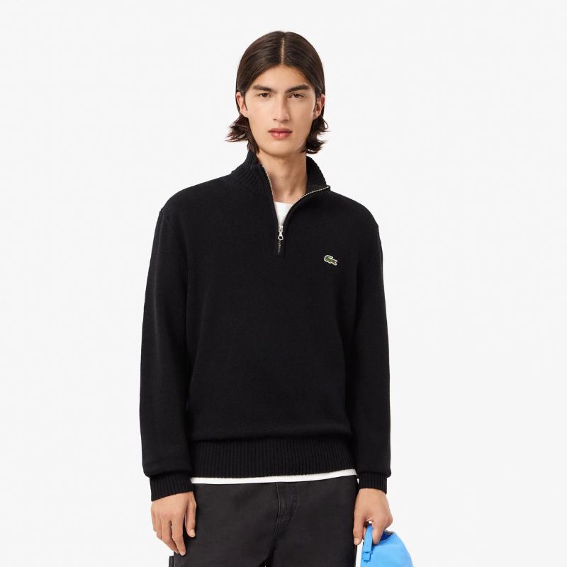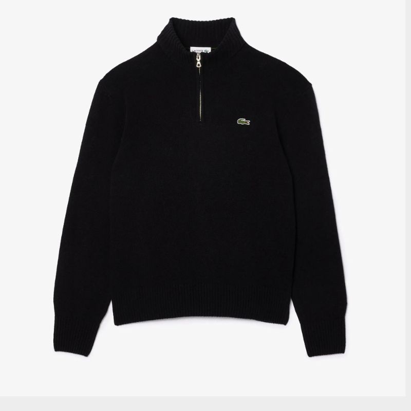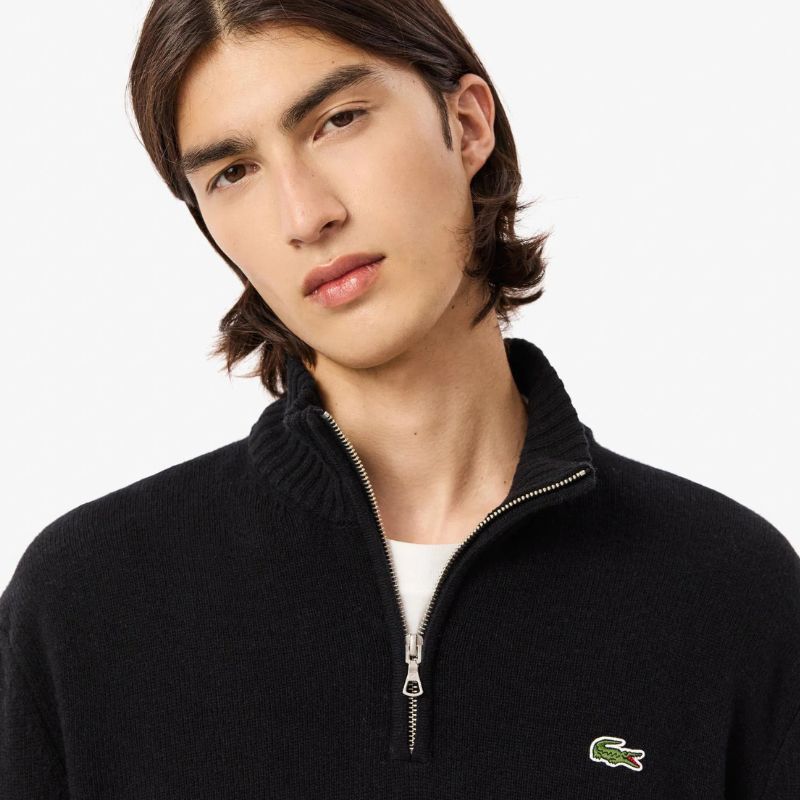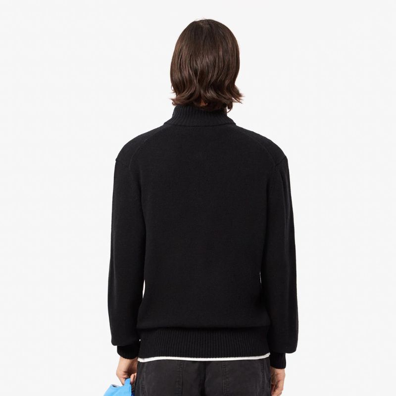Σύνθεση: 100% μαλλί Χρώμα: Μαύρο Εφαρμογή: Κανονική Ψηλός λαιμός, κλείσιμο με φερμουάρ Κεντημένος κροκόδειλος στο στήθος