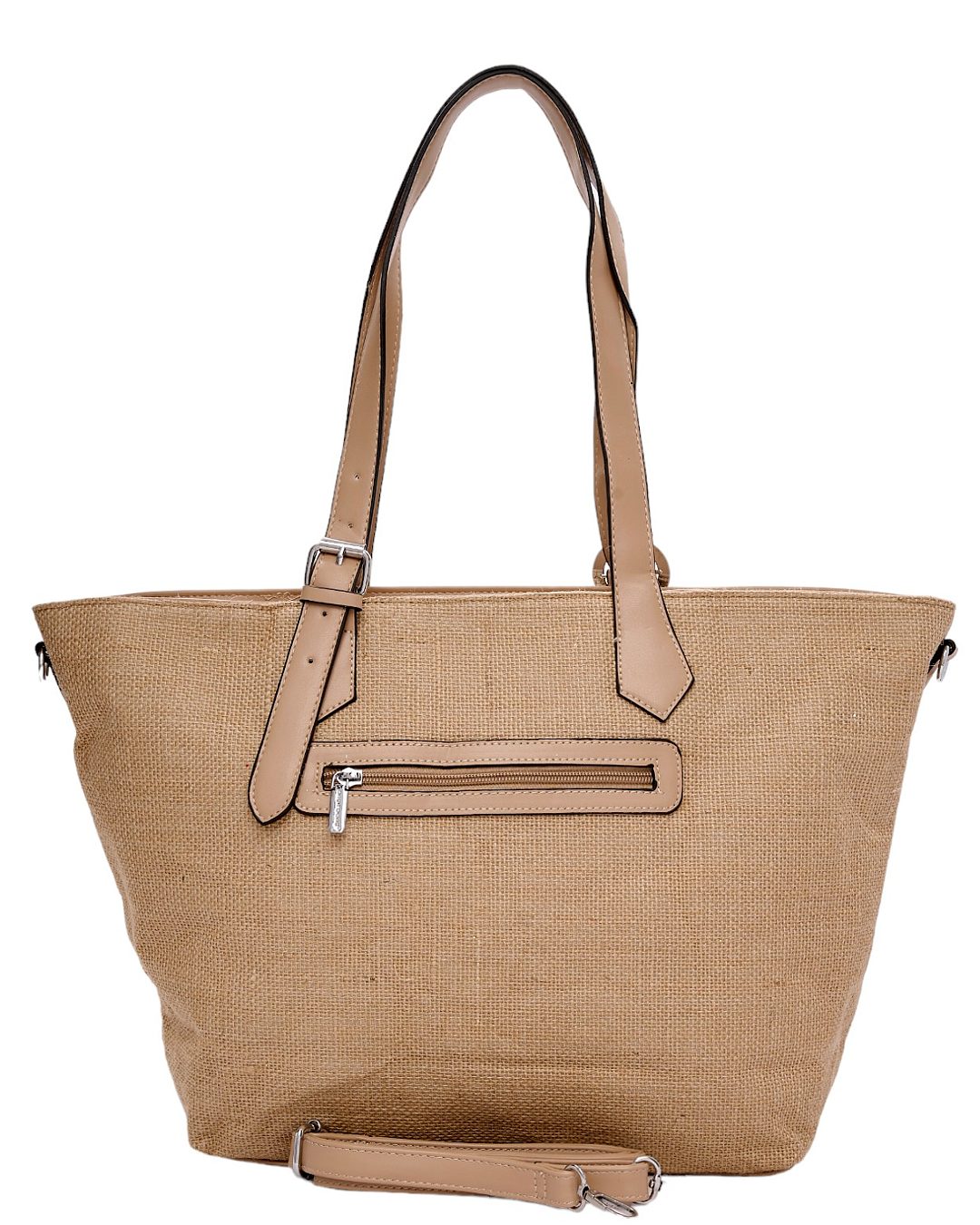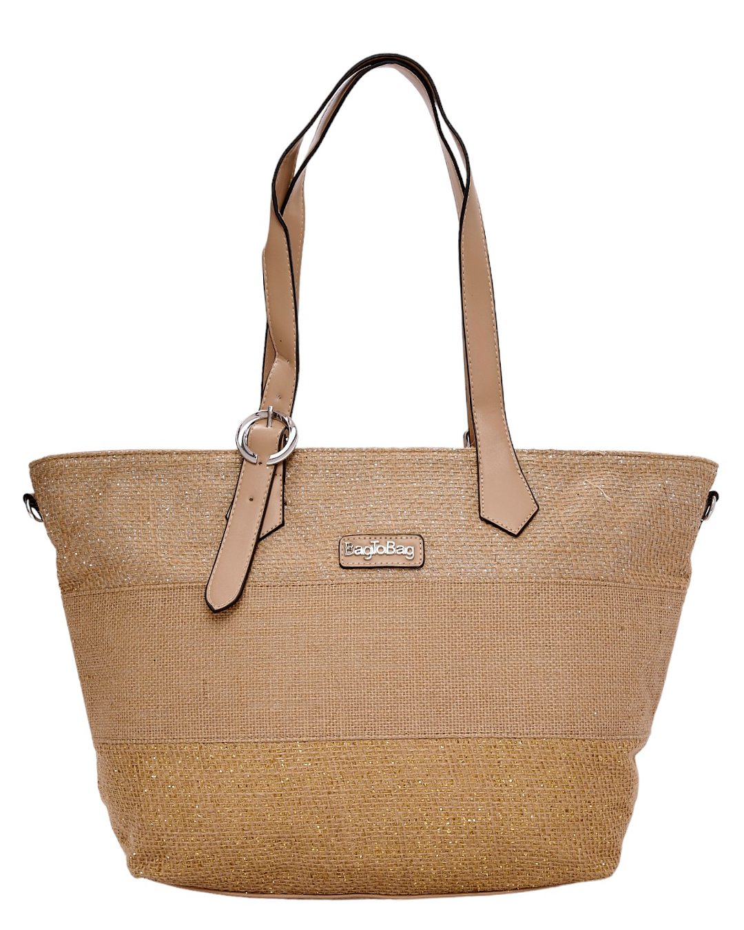 Ψάθινη τσάντα ώμου. Αποτελείται από δυο κύριους χώρους που κλείνουν με φερμουάρ.Εσωτερικά διαθέτει στην μπροστινή όψη μια βοηθητική ανοιχτή θήκηκαι στην πίσω όψη διαθέτει μία βοηθητική τσέπη που κλείνει με φερμουάρ.Εξωτερικά διαθέτει θήκη με φερμουάρ!Διαθέτει ρυθμιζόμενο-αποσπώμενο λουράκι!