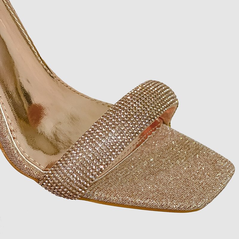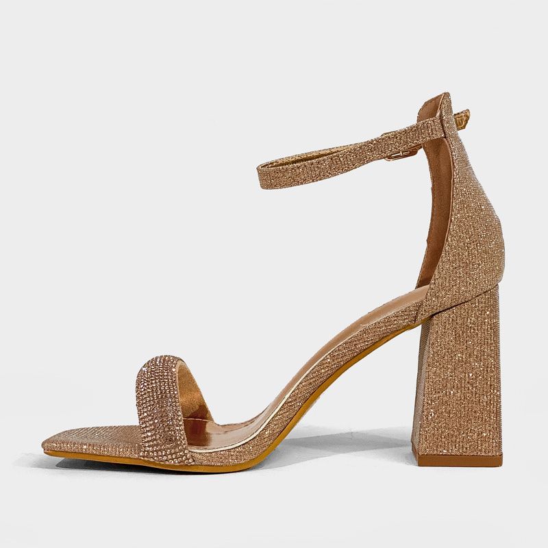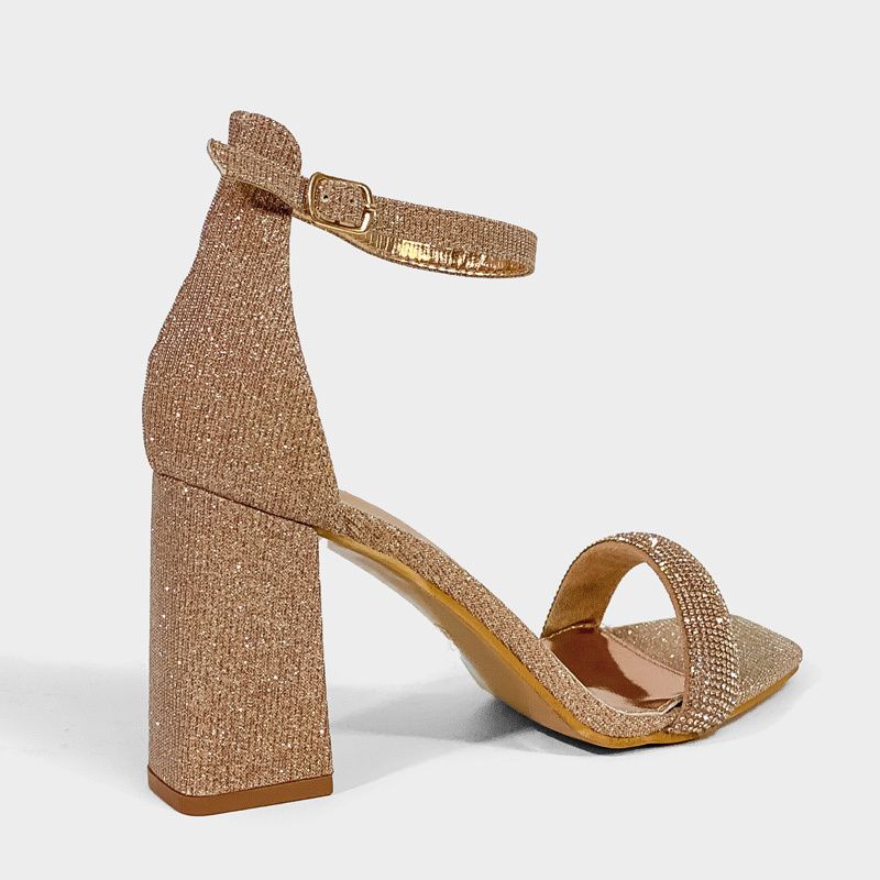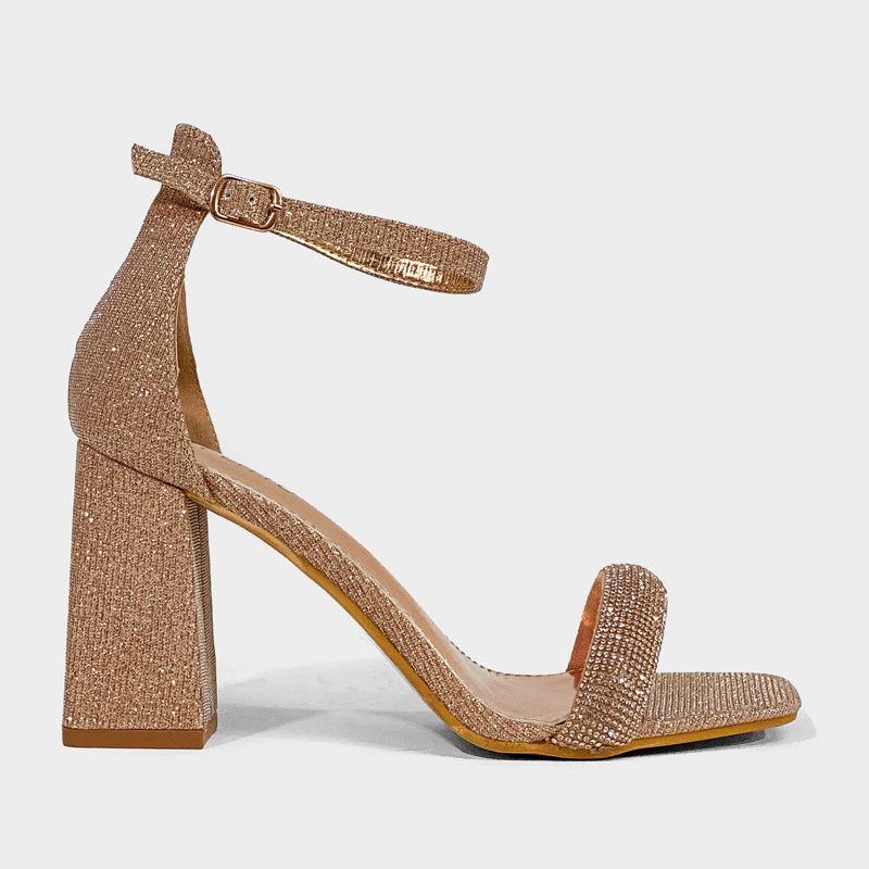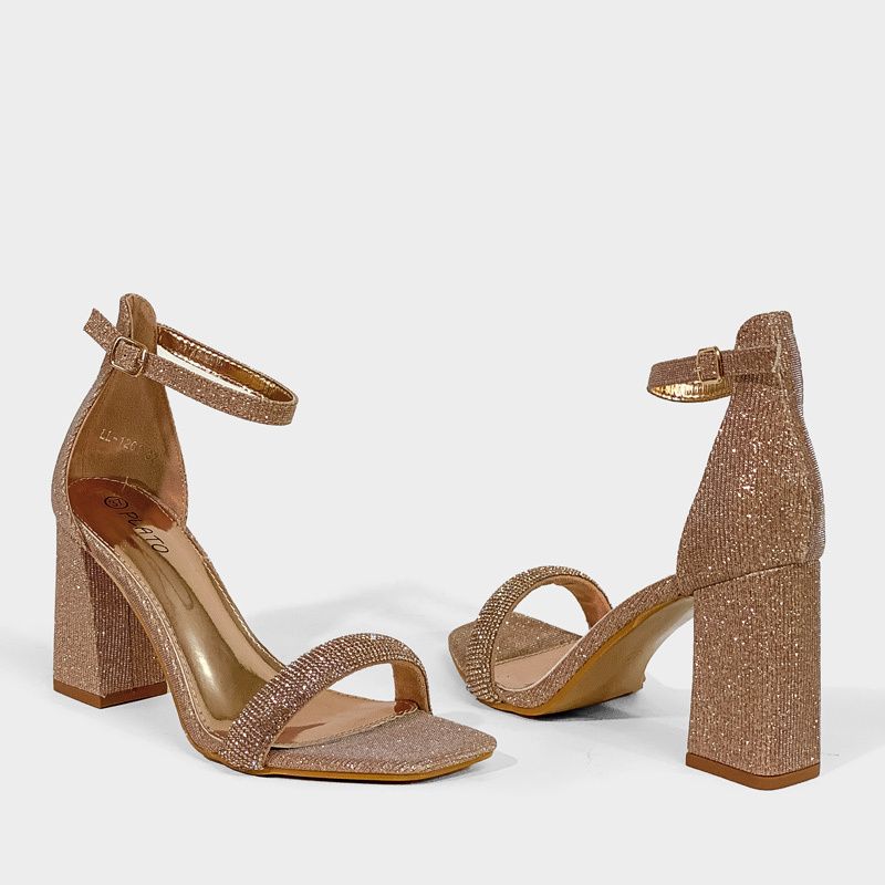 Πέδιλα με ψηλό τακούνι, διακοσμητικά στρας και glitter για περισσότερη λάμψη. Μία κομψή επιλογή που θα σας προσφέρει άνεση και στυλ σε κάθε έξοδο.