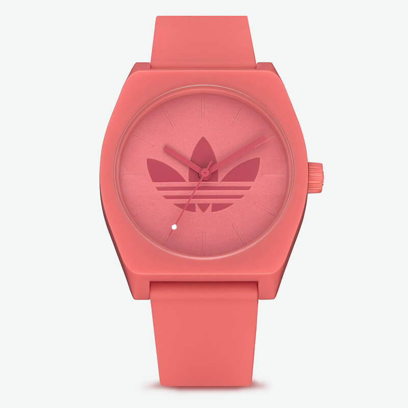 Ρολόι της Adidas από Πορτοκαλί πολυκαρμπονική κάσα. Έχει μηχανισμό μπαταρίας και κανονικό κούμπωμα.