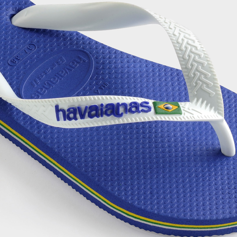 Τα Havaianas Brasil είναι ανθεκτικά σε υψηλές θερμοκρασίες, αντιολισθητικά και αδιάβροχα. Διαθέτουν λεπτό λουράκι με ανάγλυφο λογότυπο Havaianas και σημαία της Βραζιλίας. Η εξωτερική σόλα τους έχει αυλακώσεις για αποτελεσματική πρόσφυση και είναι κατασκευασμένα στη Βραζιλία από καουτσούκ.