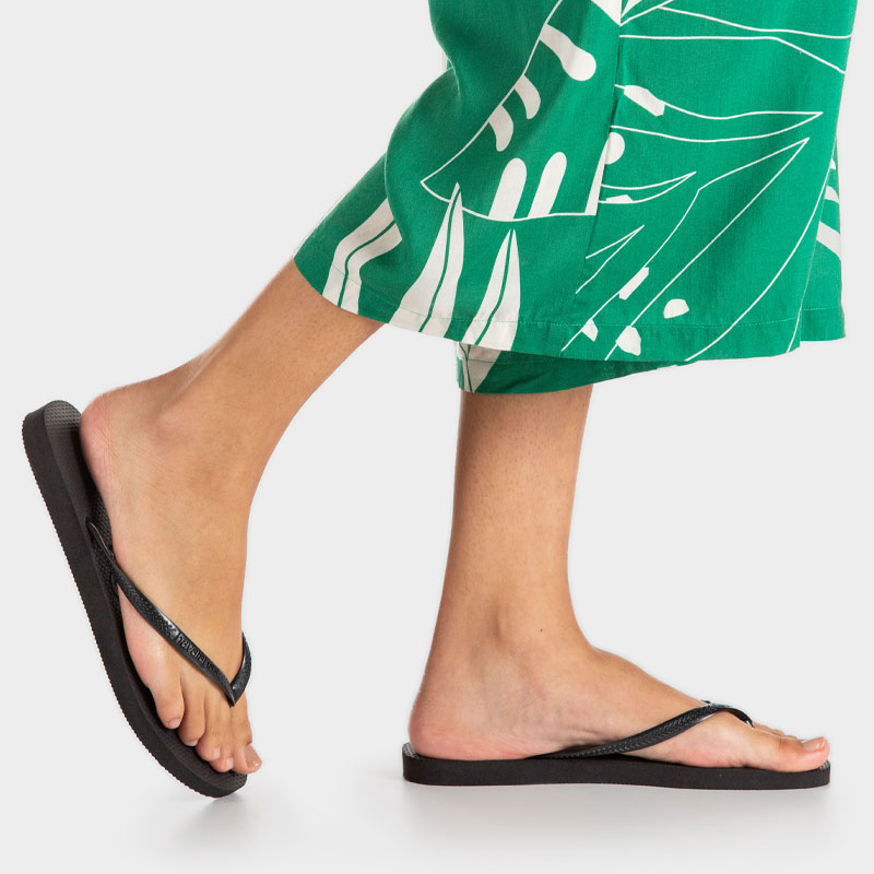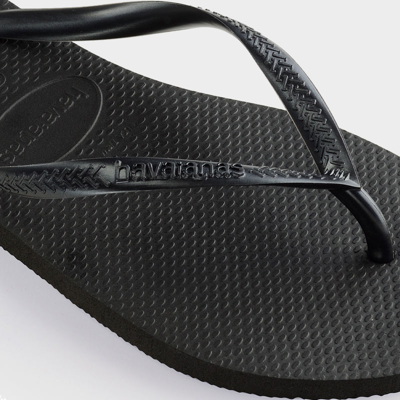 Οι σαγιονάρες Havaianas Slim είναι κατασκευασμένες από 100% φυσικό καουτσούκ στη Βραζιλία. Προσφέρουν τον απόλυτο καλοκαιρινό στιλ. Το κλασικό λουράκι με το λογότυπο της Havaianas και ο ανάγλυφος πάτος δίνουν πλήρη άνεση και στυλ. Ο μαλακός πάτος με ανάγλυφο μοτίβο “ρυζιού” εξασφαλίζει αντιολισθητική εφαρμογή.