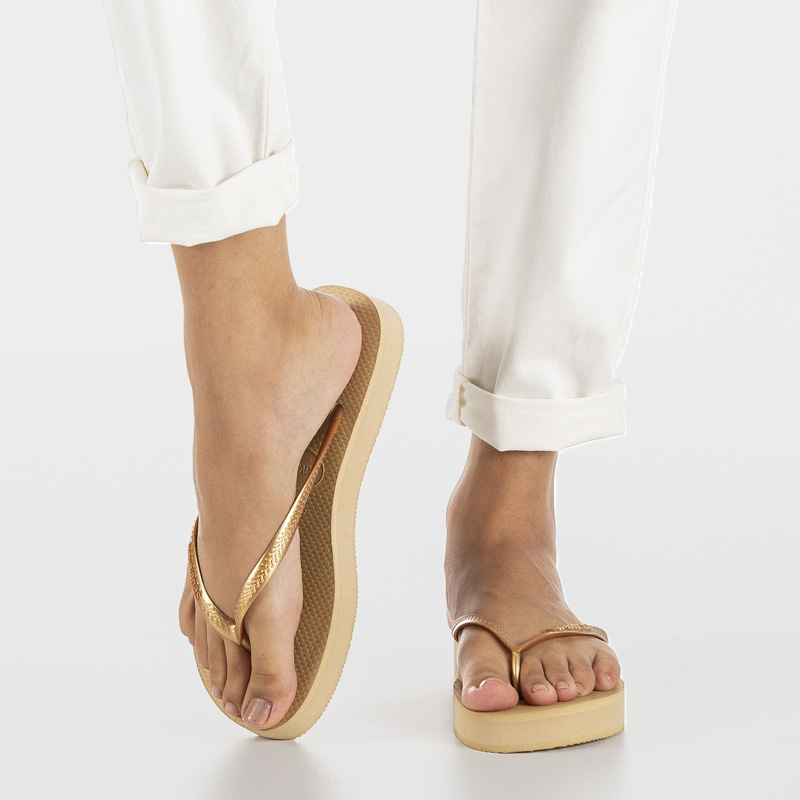 Οι slim flatform σαγιονάρες της Havaianas προσφέρουν ένα μοναδικό design με καλοκαιρινή διάθεση, συνδυάζοντας αξεπέραστο καλοκαιρινό στυλ και άνεση. Διαθέτουν κανονική εφαρμογή και είναι άνετες, ελαφριές και ανθεκτικές στη θερμότητα και το νερό. Τα λεπτά λουράκια έχουν ανάγλυφο λογότυπο Havaianas και η εξωτερική σόλα τους είναι αντιολισθητική.
