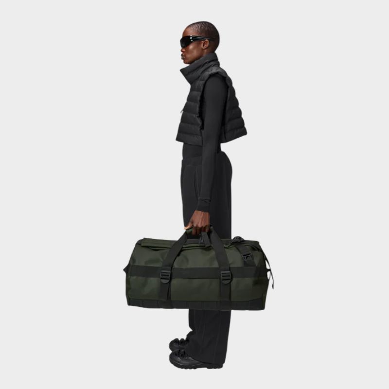 Η τσάντα Texel Duffel είναι κατασκευασμένη από το χαρακτηριστικό αδιάβροχο ύφασμα PU της Rains, σχεδιασμένο για να μεταφέρει δύναμη, ανθεκτικότητα και απαλή αίσθηση.