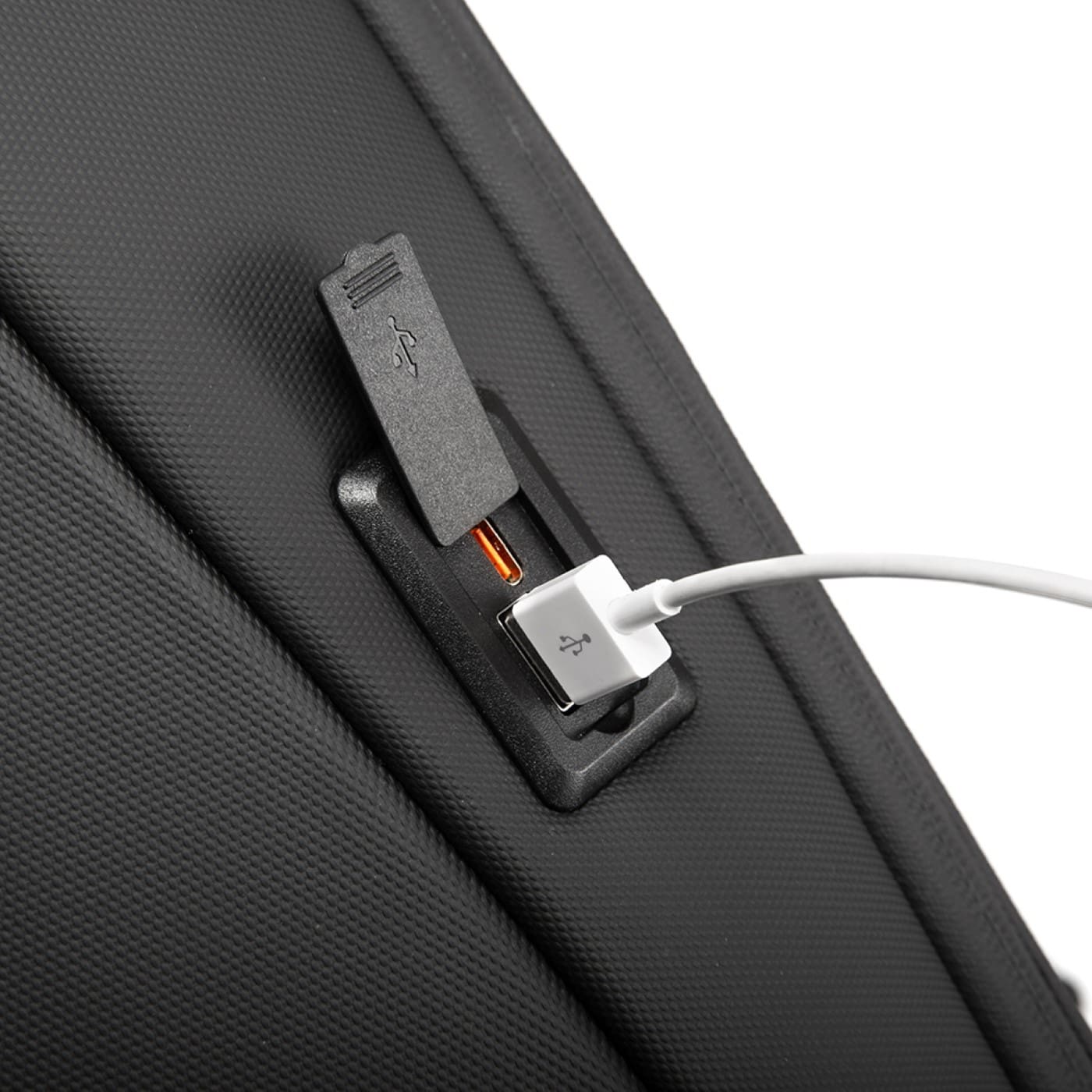 -ΦΟΡΤΙΣΗ USB-: Υπάρχει μια εξωτερική θύρα USB μέσα. Απλώς συνδέστε το σε ένα powerbank στο πλάι της τσάντας για να φορτίσετε την κινητή συσκευή σας. Το Powerbank δεν περιλαμβάνεται.