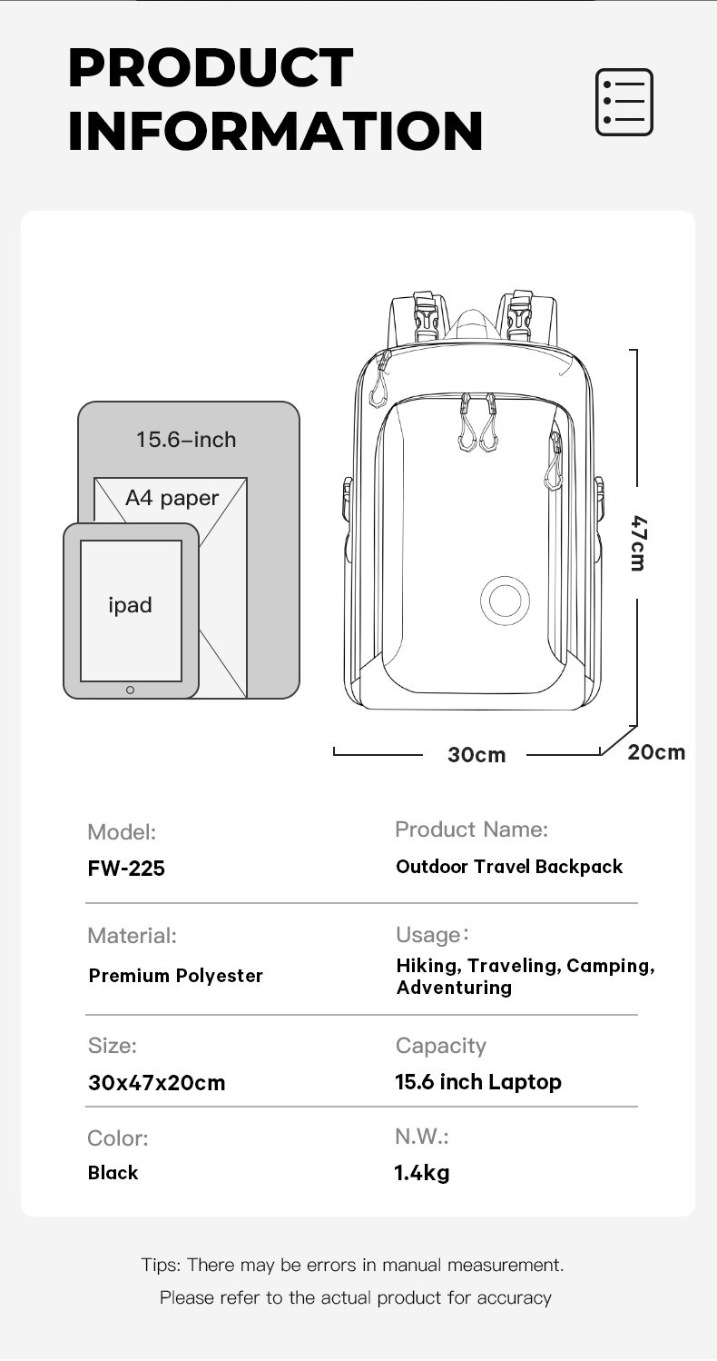 Το σακίδιο πλάτης BANGE FW-225 συνδυάζει κομψότητα και αντοχή. Διαθέτει θήκη laptop 15.6’’, αδιάβροχο υλικό και εργονομική πλάτη. Ιδανικό για καθημερινότητα, δουλειά, ταξίδι και εξορμήσεις στο βουνό.