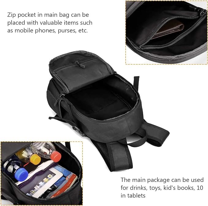 Μπροστινή τσέπη με φερμουάρ: Μπορεί να τοποθετηθεί κινητό τηλέφωνο 5,7 ιντσών, κάρτες και άλλα αντικείμενα. Πλαϊνή διχτυωτή τσάντα μπουκαλιού νερού: μπορείτε να βάλετε κανονικά ποτά 500 ml ή χαρτοπετσέτες, τσιγάρα. Η κύρια εσωτερική τσάντα με φερμουάρ μπορεί να χωρέσει πορτοφόλι ή κινητό τηλέφωνο 6 ιντσών. Η κύρια τσάντα μπορεί να τοποθετηθεί φορητός υπολογιστής 13 ιντσών, περιοδικά Α4, 3 μπουκάλια ποτών