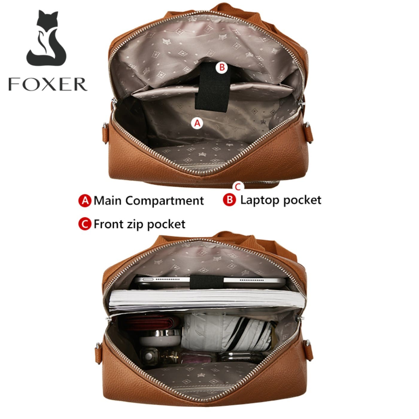 – Δομή – Το γυναικείο σακίδιο Foxer διαθέτει 1 κύρια θήκη ,1 εσωτερική ανοιχτή τσέπη , 5 εξωτερικές με φερμουάρ καλύπτοντας τις ανάγκες σας για καθημερινές δραστηριότητες. Το ευρύχωρο εσωτερικό μπορεί να χωρέσει το κραγιόν, το κινητό, τα πορτοφόλια, τα κλειδιά, τα καλλυντικά κ.λπ.