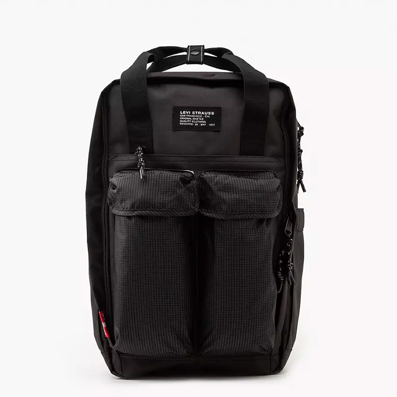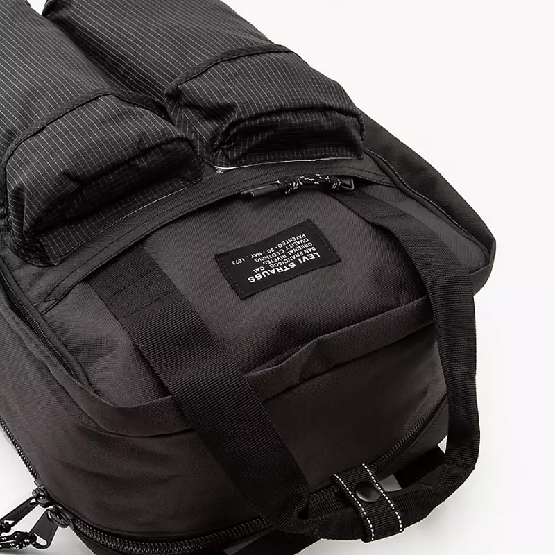 Σακίδιο της Levi’s από ύφασμα υψηλής ποιότητας σε μαύρο χρώμα και πράσινες λεπτομέρειες.