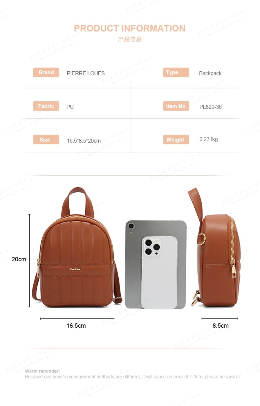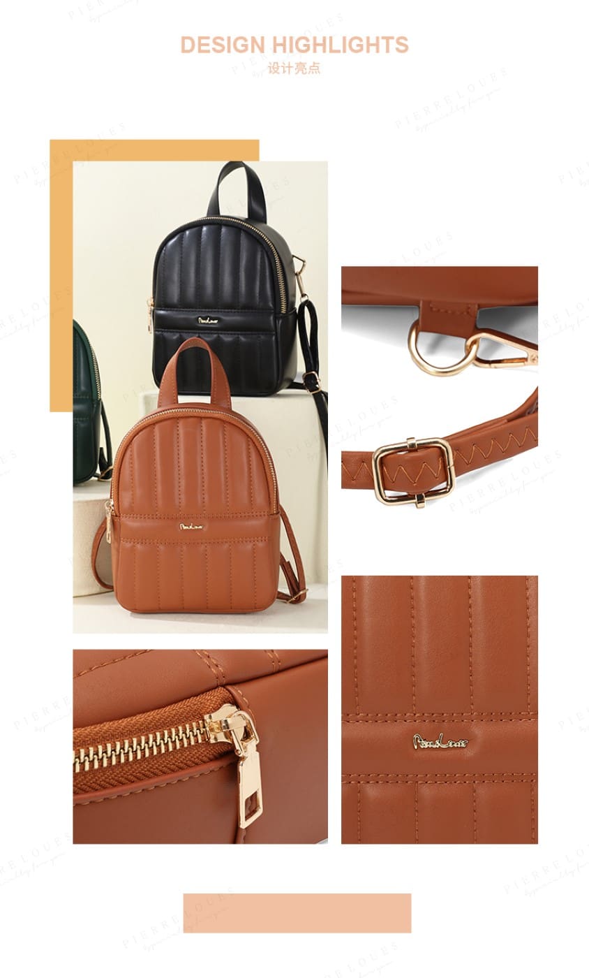 – Δομή – Το γυναικείο σακίδιο Pierre Loues διαθέτει 1 κύρια θήκη με φερμουάρ καλύπτοντας τις ανάγκες σας για καθημερινές δραστηριότητες. Το ευρύχωρο εσωτερικό μπορεί να χωρέσει το κραγιόν, το κινητό, τα πορτοφόλια, τα κλειδιά, τα καλλυντικά κ.λπ.