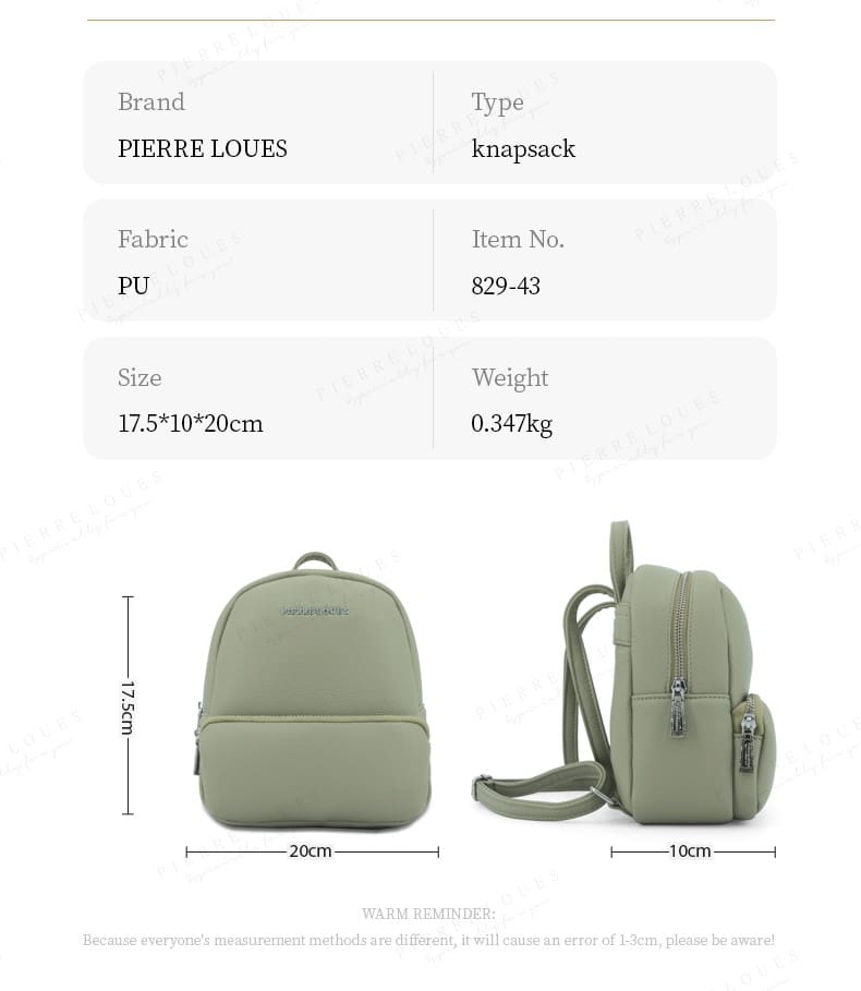 – Δομή – Το γυναικείο σακίδιο Pierre Loues διαθέτει 1 κύρια θήκη με φερμουάρ και μια στο μπροστινό μέρος της τσάντας καλύπτοντας τις ανάγκες σας για καθημερινές δραστηριότητες. Το ευρύχωρο εσωτερικό μπορεί να χωρέσει το κραγιόν, το κινητό, τα πορτοφόλια, τα κλειδιά, τα καλλυντικά κ.λπ.