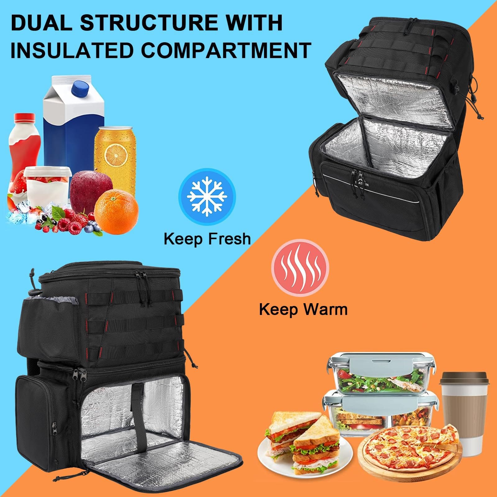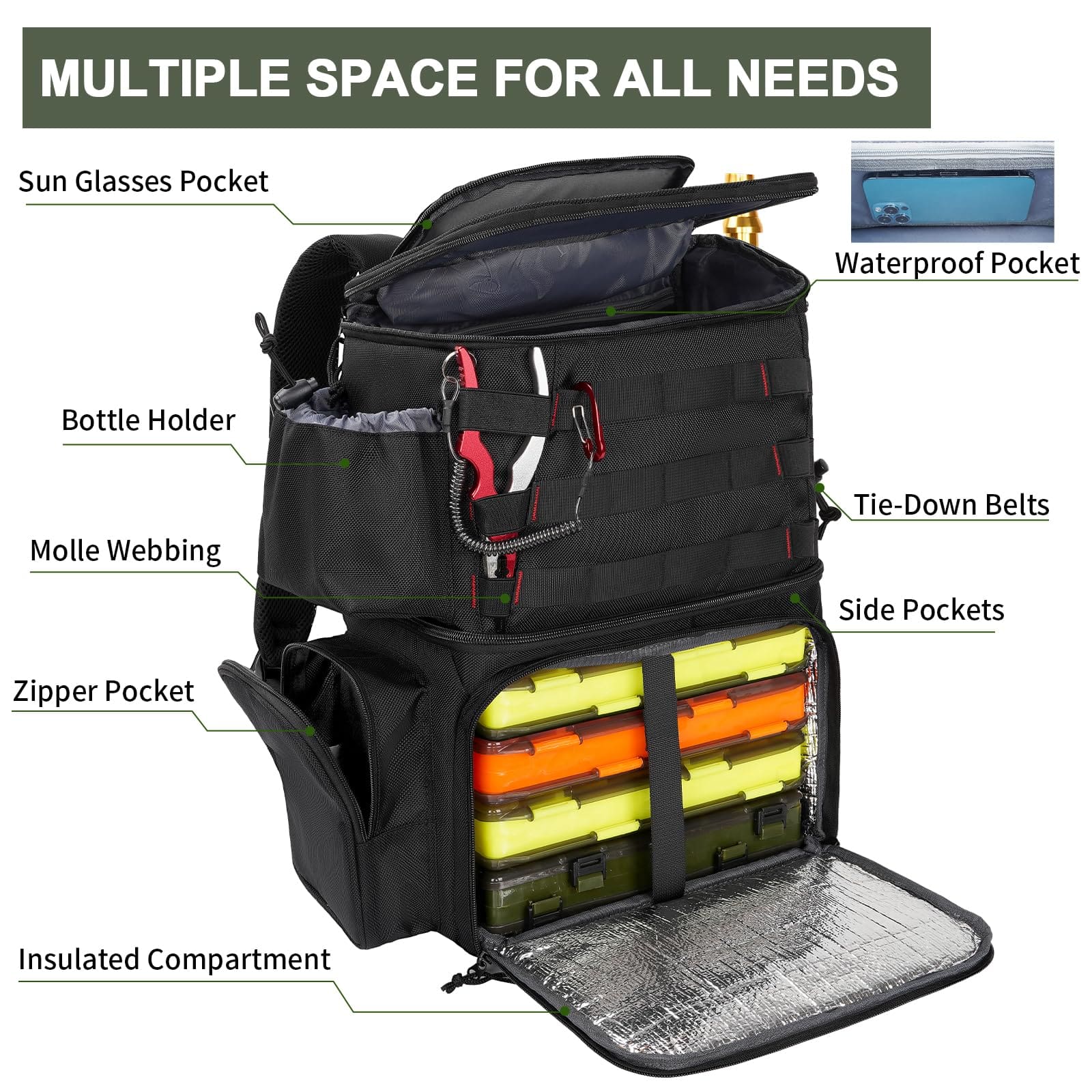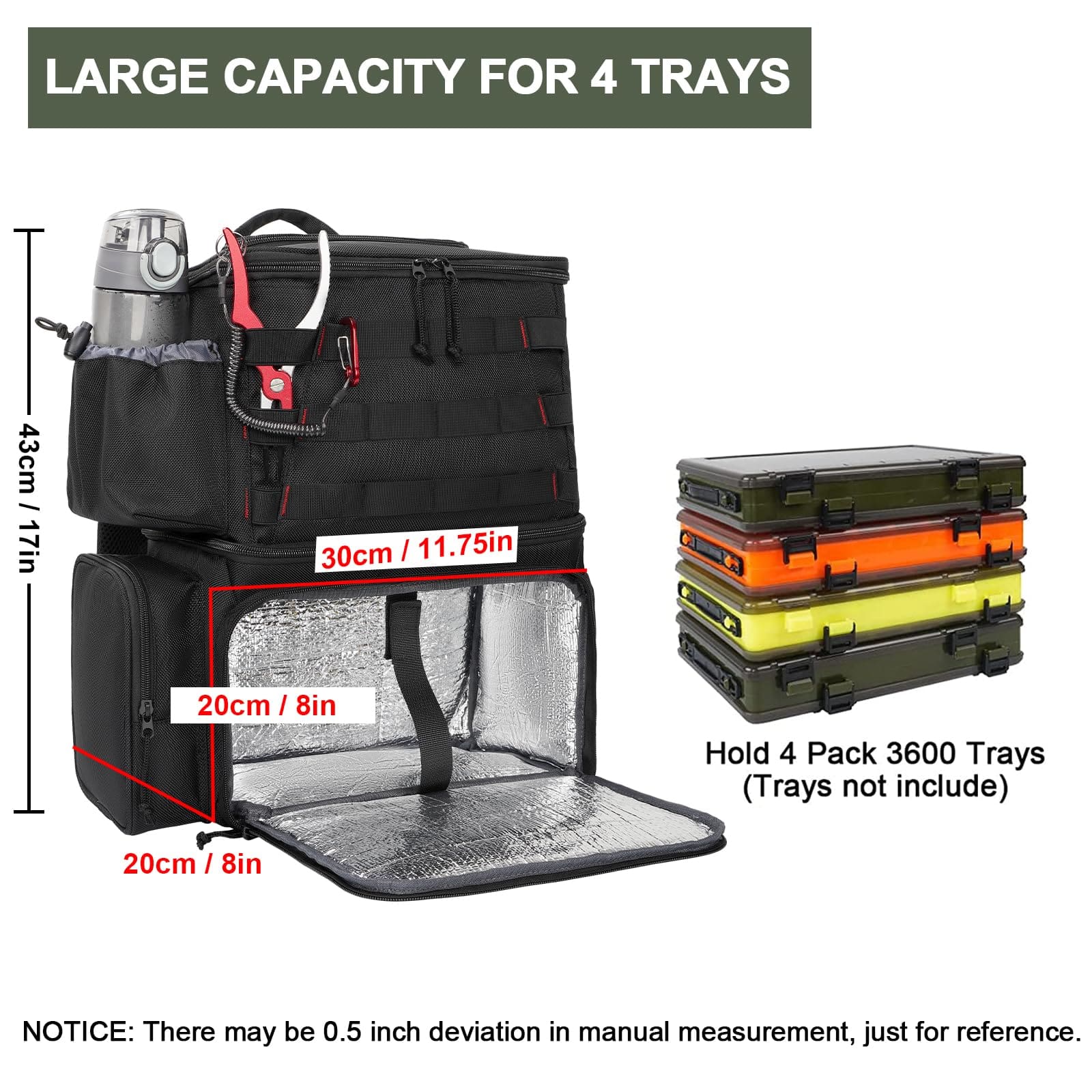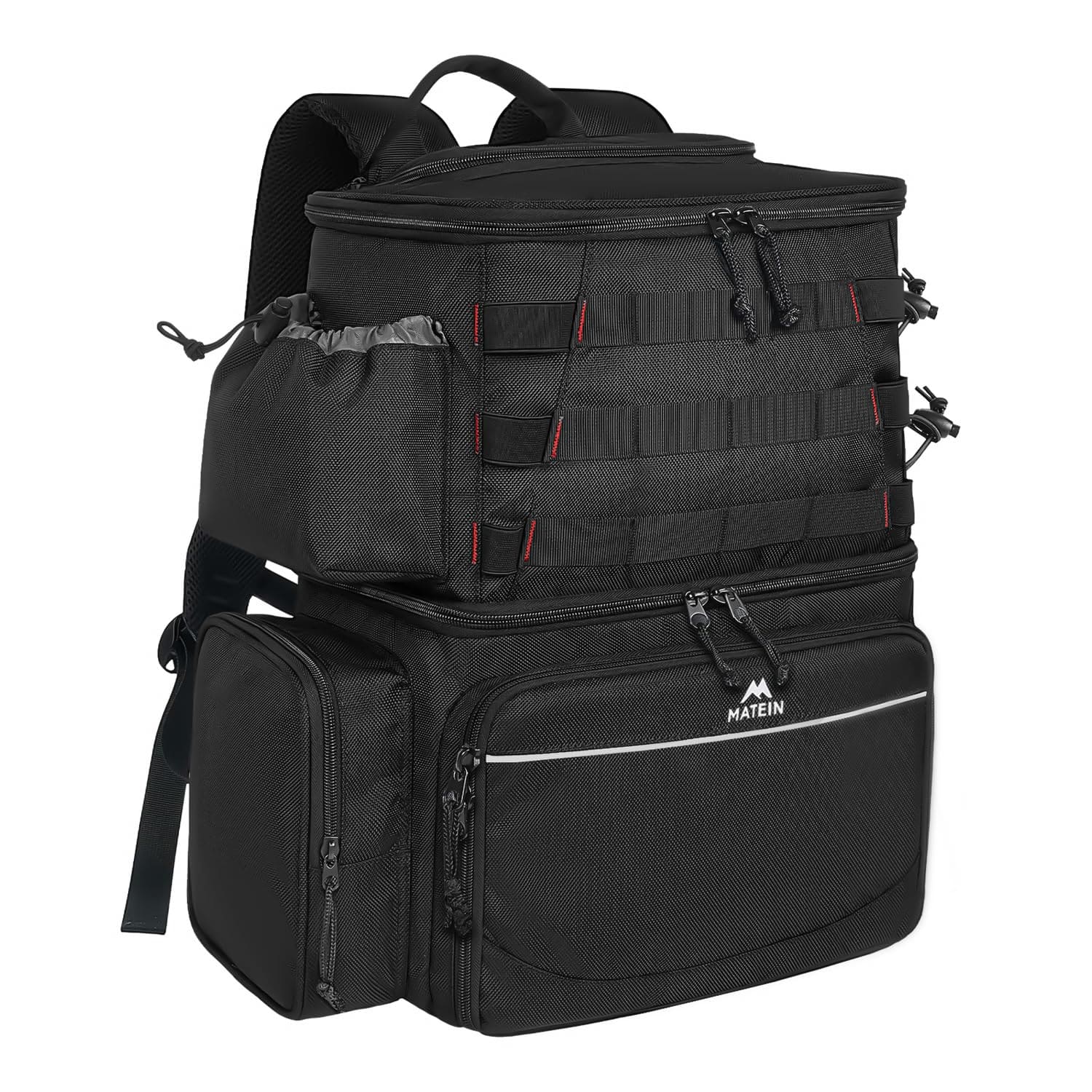 -Διπλή δομή με ψυγείο-:Το σακίδιο ψαρέματος/εκδρομής MATEIN διαθέτει μια μεγάλη θήκη ψύξης με μπροστινή φόρτωση που μπορεί να χωρέσει τέσσερα κουτιά 3600 tuckle box . Επωφεληθείτε από το υψηλής ποιότητας μονωμένο υλικό του, θα μπορούσατε να το χρησιμοποιήσετε ως ψυγείο και να διατηρήσετε τα ποτά, τα τρόφιμα, τα φρούτα και το μεσημεριανό γεύμα σας ζεστά/κρύα/φρέσκα. Το διπλό φερμουάρ στη μέση καθιστά διαθέσιμο το άνοιγμα αυτού του σακιδίου πλάτης σε 180 μοίρες, ώστε να μπορείτε να αποθηκεύετε και να έχετε πρόσβαση στα υπάρχοντα σας εύκολα. Επαρκείς αποθηκευτικοί χώροι για όλα τα αλιευτικά σας εργαλεία