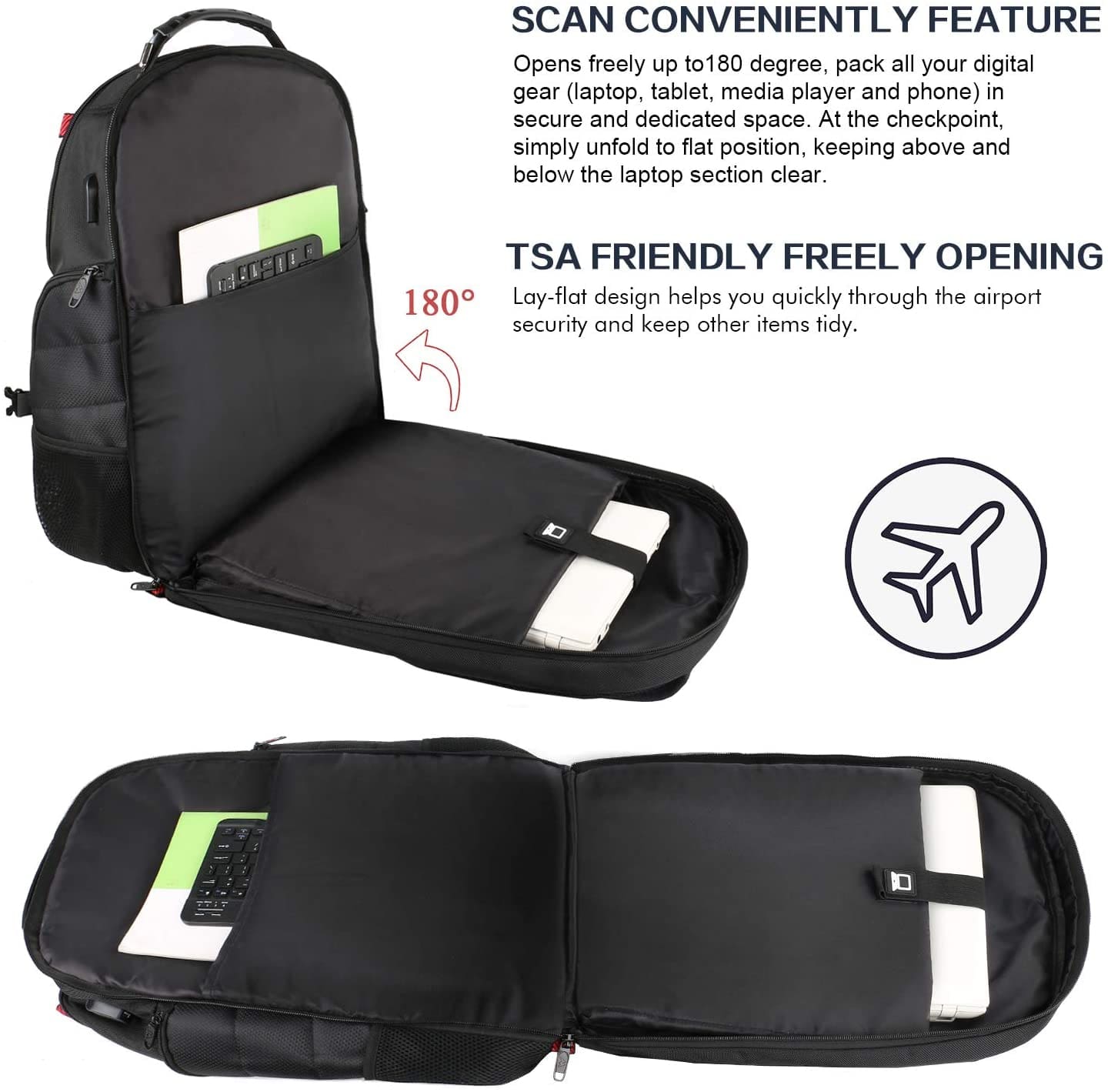 – TSA FRIENDLY & MULTIPURPOSE : Σακίδιο φορητού υπολογιστή TSA με χωριστή θήκη για φορητό υπολογιστή που μπορεί να αποσυμπιεστεί ελεύθερα από 90 έως 180 μοίρες, κάνοντας σας να περνάτε γρήγορα την ασφάλεια του αεροδρομίου χωρίς να αφαιρείτε τίποτα από την τσάντα. Επαγγελματικό και unisex για διεθνή ταξίδια, απόδραση το Σαββατοκύριακο, κρουαζιέρα, πτήση, διανυκτέρευση, χρησιμεύει επίσης ως σακίδιο πλάτης για φορητό υπολογιστή ταξιδιού, ευρύχωρο σακίδιο πανεπιστημίου, ανδρικό και γυναικείο σακίδιο με θύρα φόρτισης usb κ.λπ.