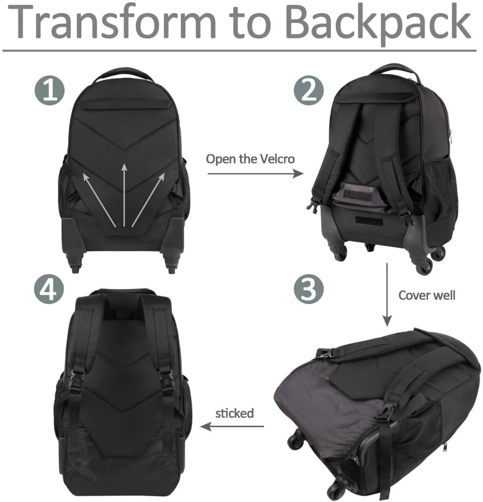 -ROLLING & BACKPACKING: Εξατομικευμένα και δημιουργικά δώρα. Το κυλιόμενο σακίδιο πλάτης πολλαπλών κατευθύνσεων 4 τροχών επιτρέπει την ομαλή κίνηση 360 μοιρών για κύλιση ελεύθερου βάρους σε οποιεσδήποτε περιπτώσεις, όπως διεθνή ταξίδια με αεροπλάνο, επαγγελματικές πτήσεις, σιδηροδρομικό σταθμό και σχολή κολεγίου. Ή θα μπορούσατε εύκολα να μετατρέψετε το κυλιόμενο σακίδιο σε ένα κανονικό σακίδιο ταξιδιού. Αυτό το σακίδιο είναι τέλειο ως δώρο για φοιτητές και φίλους σε επαγγελματικά ταξίδια. Αφήστε τους να επιλέξουν τον τέλειο τρόπο να ταξιδέψουν