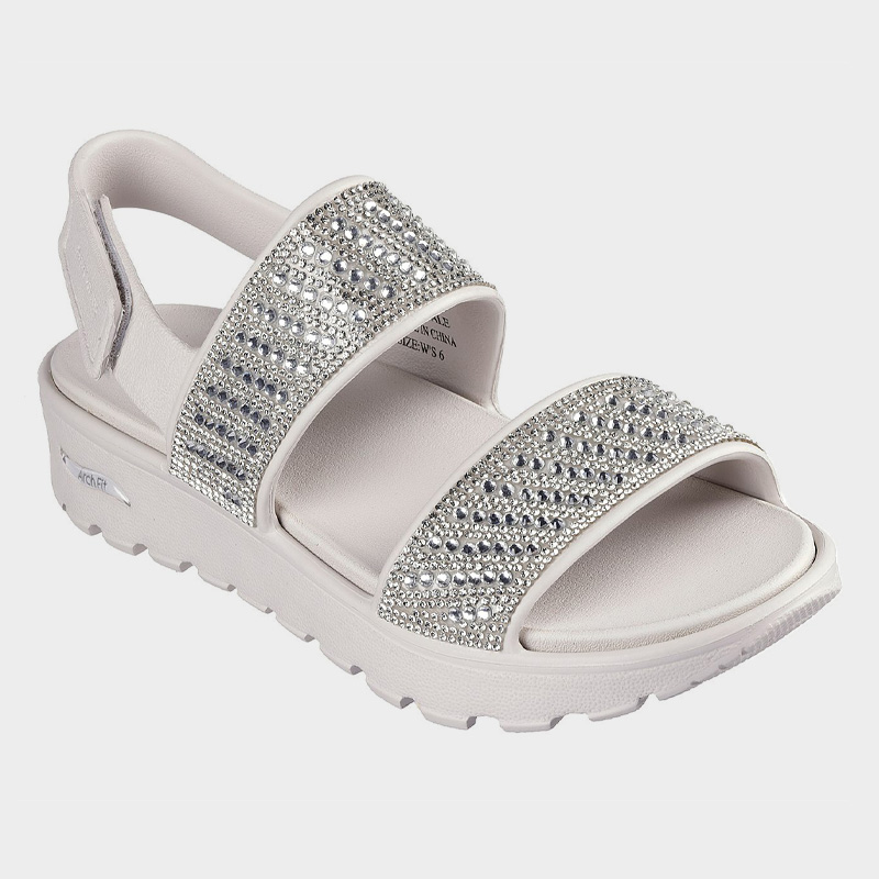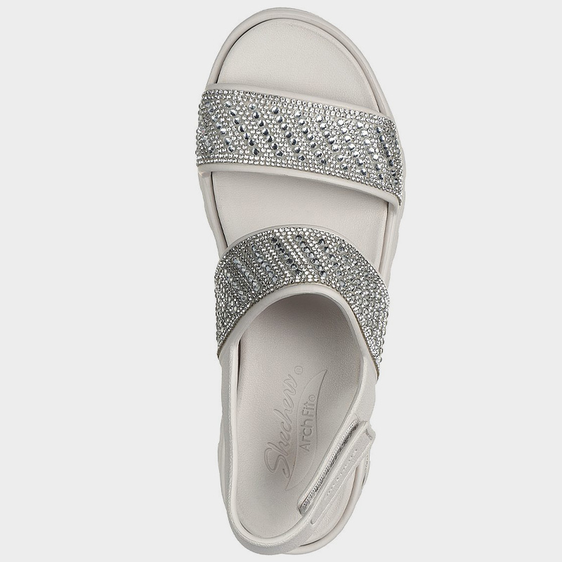 Σανδάλι Skechers με ελαφρύ, εύκαμπτο άνω μέρος με διακοσμητικά στρας. Διαθέτει σύστημα εσωτερικής σόλας Skechers Arch Fit® με υποστήριξη καμάρας πιστοποιημένη από ποδολόγο και σχήμα σχεδιασμένο από ποδίατρο που αναπτύχθηκε με δεδομένα 20 ετών και 120.000 σαρώσεις ποδιών και εξωτερική σόλα με ελαστική πρόσφυση. Ένα σανδάλι για λαμπερές εμφανίσεις το καλοκαίρι.