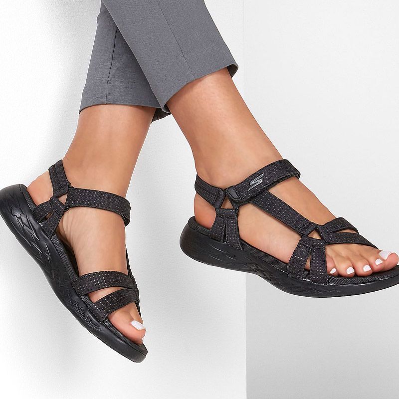 Σανδάλια με λουράκια της Skechers από ύφασμα υψηλής ποιότητας σε μαύρο χρώμα. Διαθέτει τεχνολογία Goga Max® και Goga Pillars® στην ενδιάμεση και την εξωτερική σόλα. Η ενδιάμεση σόλα 5GEN™- proprietary lightweight injection-molded compound with memory retention προσφέρει αντικραδασμική δράση και μεγαλύτερη άνεση. Μία επιλογή που θα σου προσφέρει άνεση και στιλ στις καλοκαιρινές σας βόλτες.