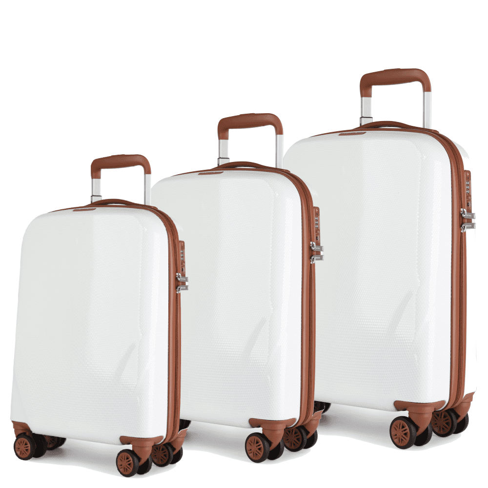 Σετ 3 βαλιτσών ταξιδιού (Καμπίνας, Μεσαία & Μεγάλη) από PC, με ελαφρύ και ανθεκτικό κέλυφος για προστασία από φθορά, γρατσουνιές και νερό. Περιλαμβάνουν κλειδαριές TSA 3 ψηφίων για ασφάλεια και συνοδεύονται από 2ετή εγγύηση καλής