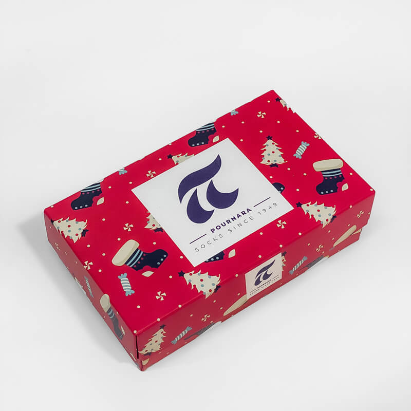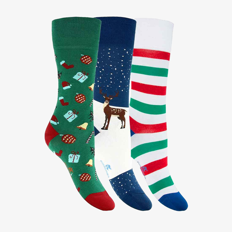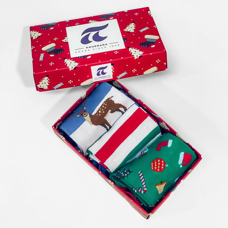 Χριστουγεννιάτικό σετ δώρου Πουρνάρα που αποτελείτε από 3 ζεύγη καλτσών σε 3 διαφορετικά σχέδια.