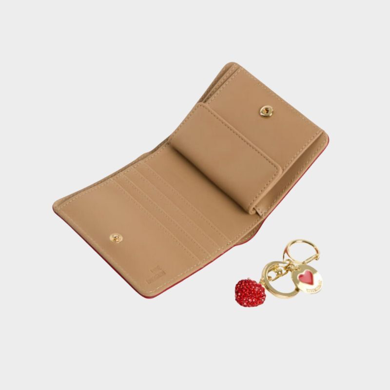 Αναδείξτε το στυλ σας με αυτό το κομψό σετ της LOVE MOSCHINO, που συνδυάζει πρακτικότητα και πολυτέλεια. Το σετ περιλαμβάνει ένα premium πορτοφόλι σε έντονο κόκκινο χρώμα καθώς και ένα υπέροχο μπρελόκ με χρυσές λεπτομέρειες, ιδανικό για καθημερινή χρήση ή ως ξεχωριστό δώρο.