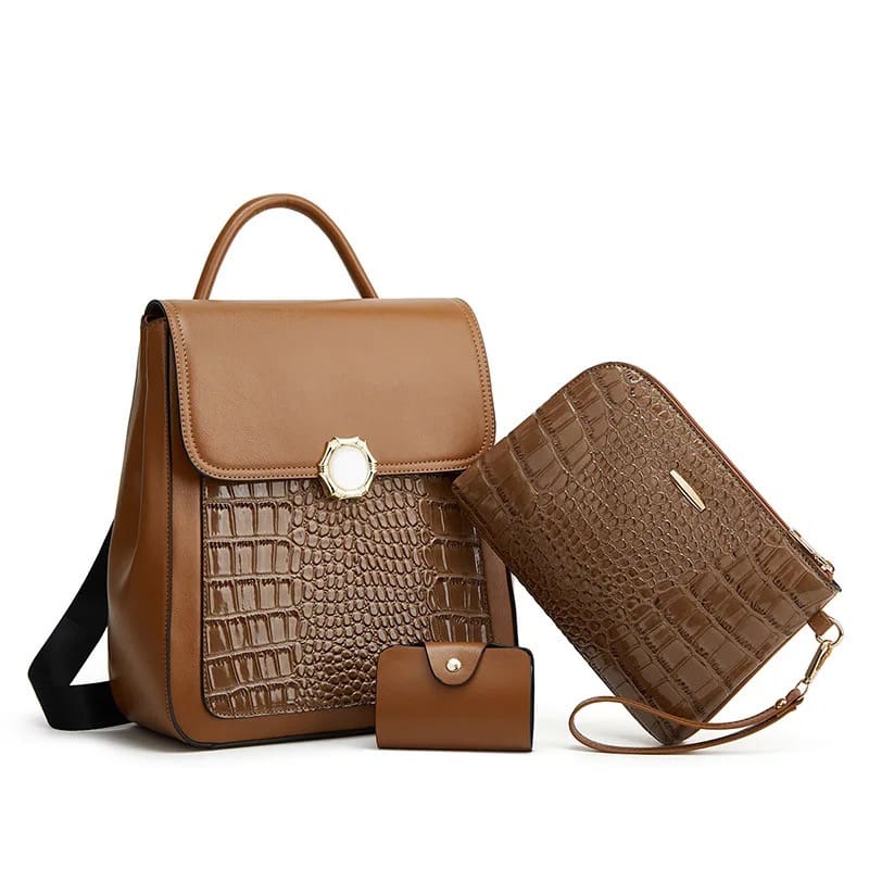 -Γυναικείο Σετ-: Το σακίδιο πλάτης έχει μια κύρια θήκη με μία εσωτερική τσέπη με φερμουάρ . Το γυναικείο σετ 4 τεμαχίων περιλαμβάνει ένα σακίδιο πλάτης, τσάντα χιαστί μεσαίου μήκους και ένα νεσεσέρ .Το σακίδιο πλάτης μπορεί να χωρέσει το iPad, το πορτοφόλι, τα μακιγιάζ, το τηλέφωνο, το μικρό μπουκάλι νερό, τα αρώματα, τα γάντια και άλλα καθημερινά πράγματα να τα κρατήσει οργανωμένα.