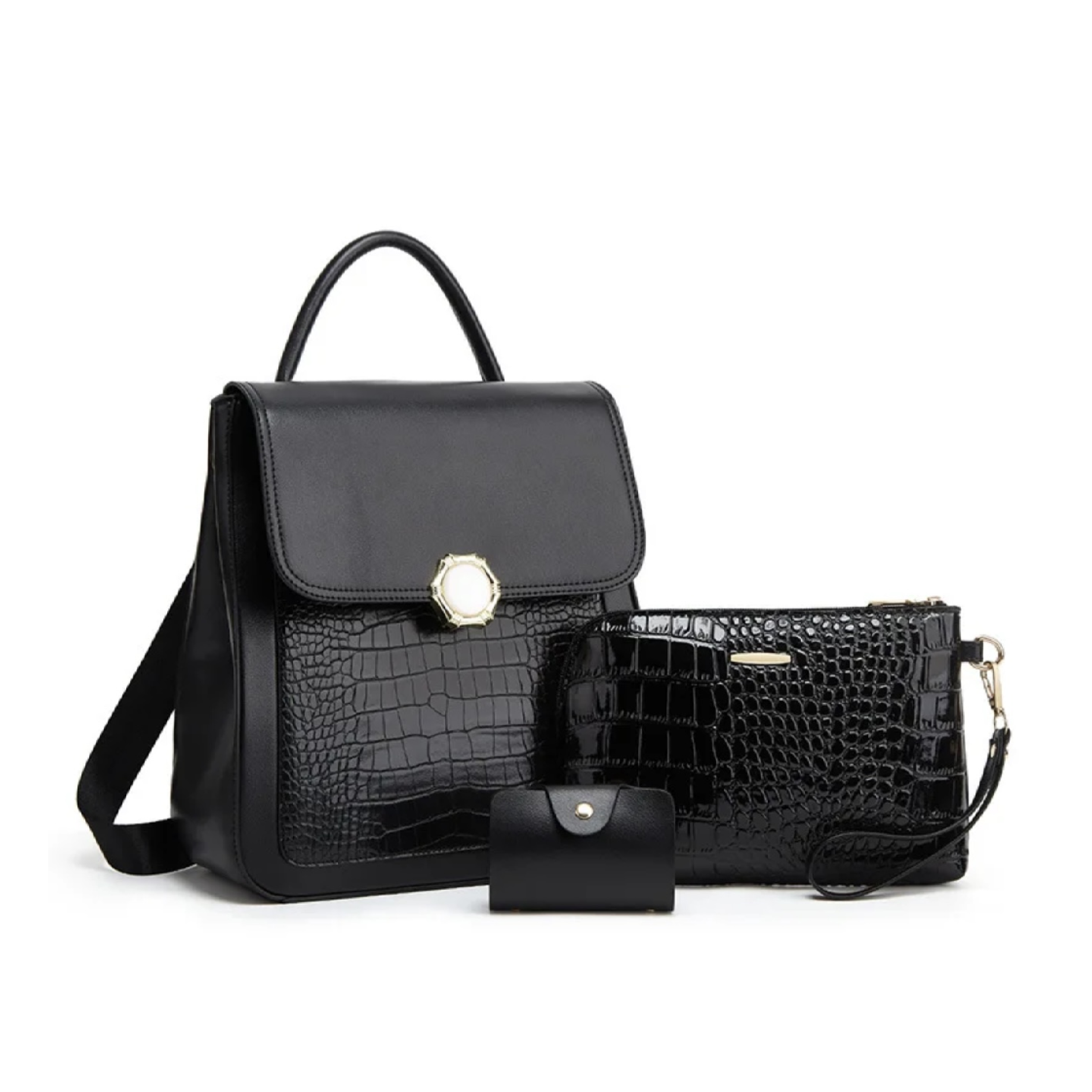 -Γυναικείο Σετ-: Το σακίδιο πλάτης έχει μια κύρια θήκη με μία εσωτερική τσέπη με φερμουάρ . Το γυναικείο σετ 4 τεμαχίων περιλαμβάνει ένα σακίδιο πλάτης, τσάντα χιαστί μεσαίου μήκους και ένα νεσεσέρ .Το σακίδιο πλάτης μπορεί να χωρέσει το iPad, το πορτοφόλι, τα μακιγιάζ, το τηλέφωνο, το μικρό μπουκάλι νερό, τα αρώματα, τα γάντια και άλλα καθημερινά πράγματα να τα κρατήσει οργανωμένα.