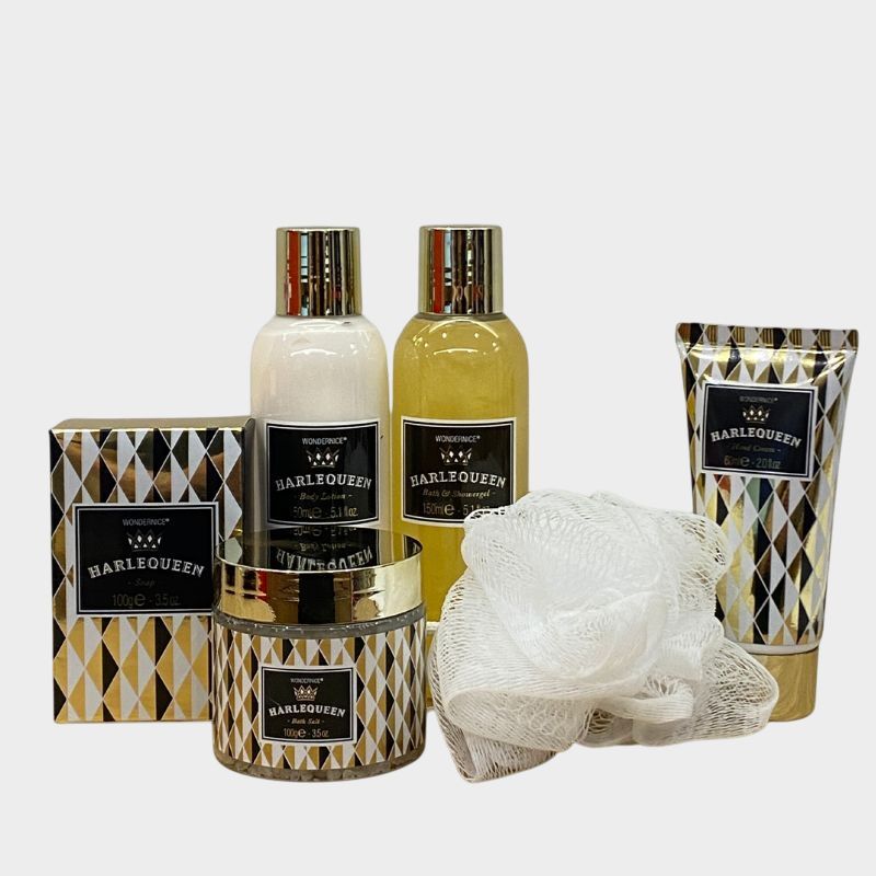 Ανακαλύψτε το πολυτελές σετ καλλυντικών με μαύρη τσάντα. Περιλαμβάνει αφρόλουτρο, λοσιόν σώματος, κρέμα χεριών, άλατα μπάνιου & σαπούνι με oriental floral άρωμα – ιδανικό wellness δώρο για γυναίκες.