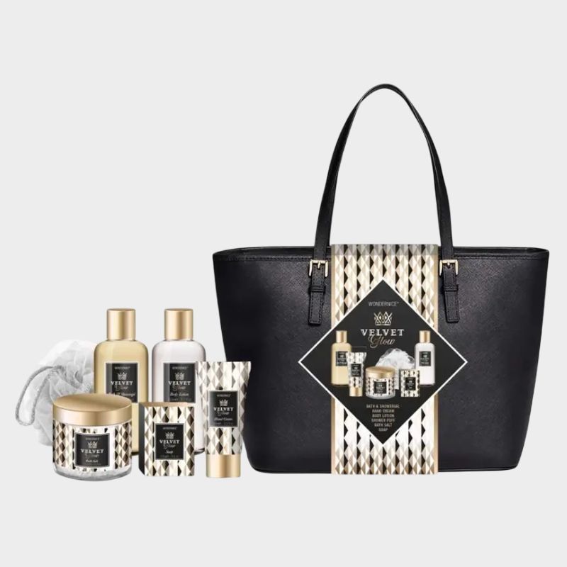 Χαρίστε ένα πολυτελές δώρο ευεξίας σε όσους αγαπούν τη φροντίδα και τη χαλάρωση! Το σετ περιποίησης σώματος με μαύρη τσάντα ώμου συνδυάζει κομψότητα, αρωματοθεραπεία και περιποίηση σώματος, ιδανικό για κάθε γυναίκα που θέλει να απολαμβάνει στιγμές πολυτέλειας.