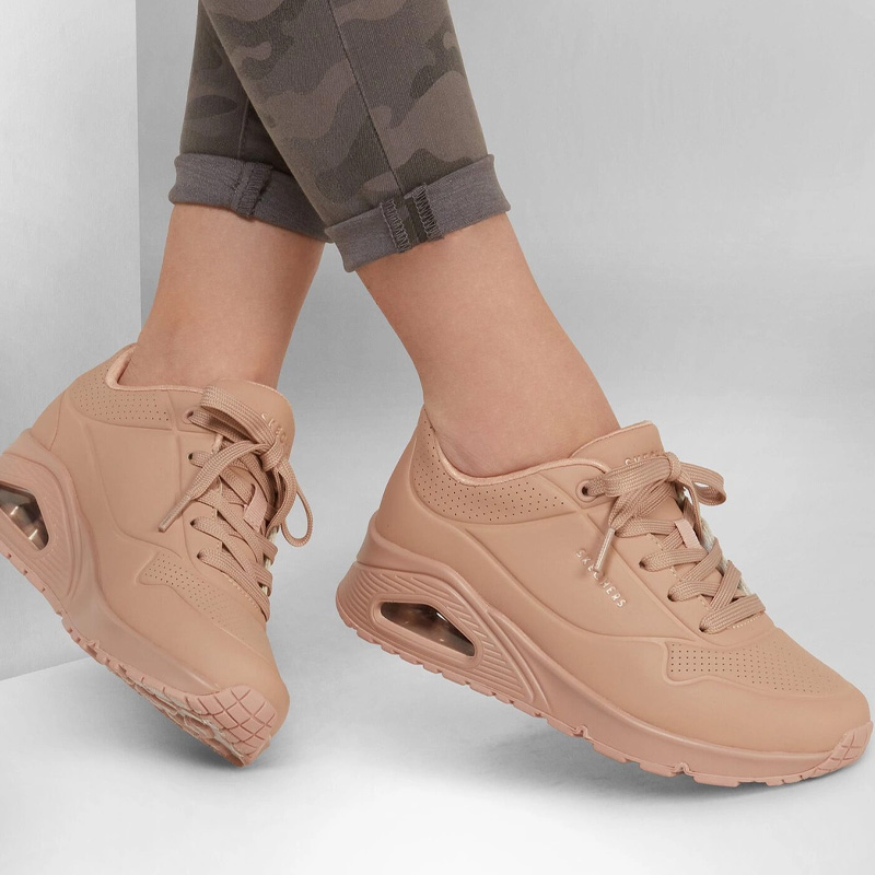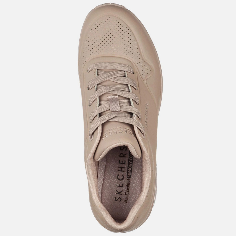 Sneaker της Skechers από οικολογικό δέρμα σε μπεζ χρώμα. Διαθέτει εσωτερικό πάτο με Air Cooled Memory Foam για μέγιστη άνεση, ενδιάμεση σόλα με Air-Cushioned τμήματα για εξαιρετική αντικραδασμική προστασία και εύκαμπτη εξωτερική σόλα μεγάλης πρόσφυσης. Ένα μοδάτο, καθημερινό παπούτσι με κορδόνια που θα σας προσφέρει άνεση και στυλ.