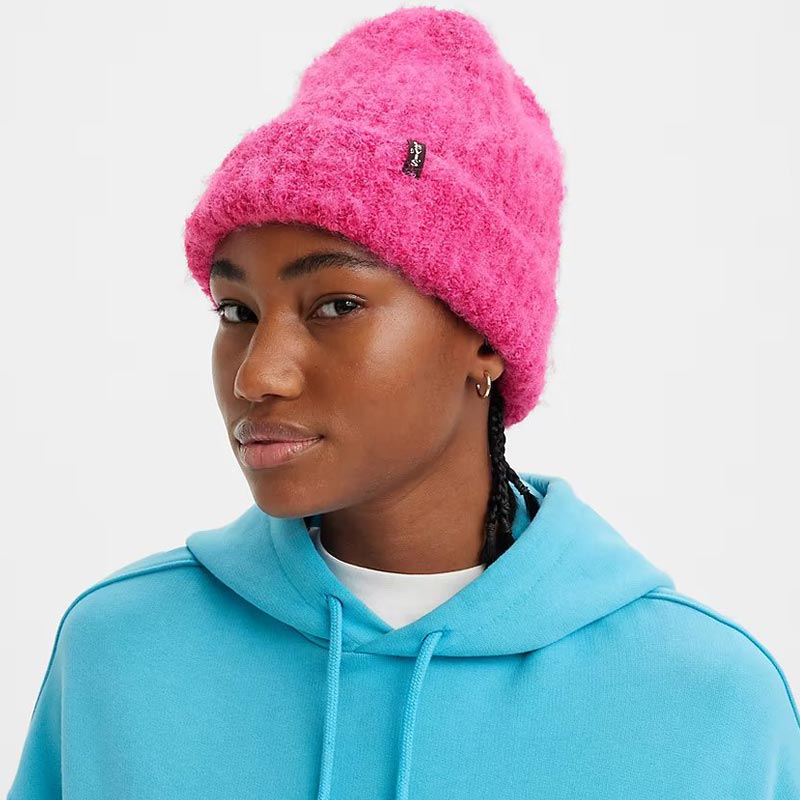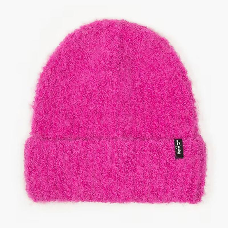 Γυναικείο σκουφάκι Levi`s σε φουξ χρώμα. Ένα πλεκτό σκουφάκι με αναδιπλούμενο σχέδιο