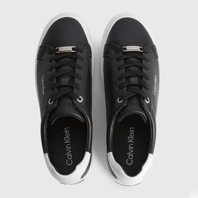 Sneaker Calvin Klein με άνω μέρος από γνήσιο δέρμα σε μαύρο χρώμα. Διαθέτει άνετο εσωτερικό πάτο και εξωτερική σόλα από καουτσούκ. Ένα κομψό παπούτσι για τις καθημερινές σας υποχρεώσεις.