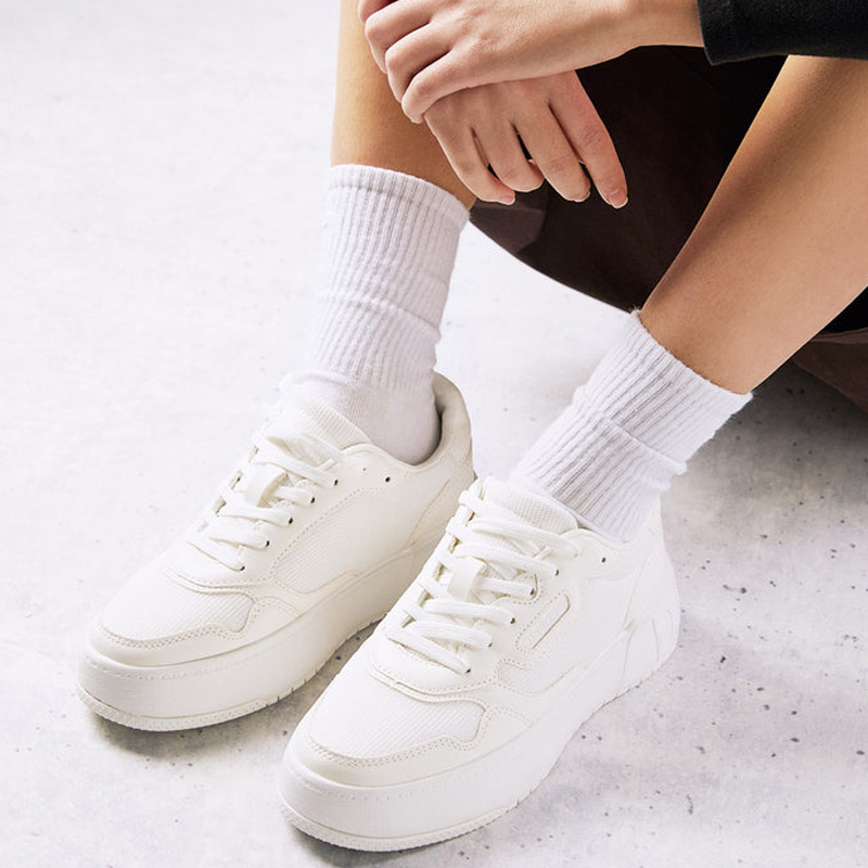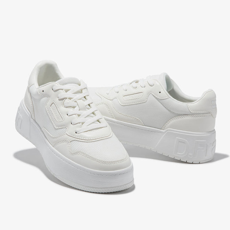 Minimal trainers με σπορ έμπνευση από την D.Franklin, που ξεπερνούν το γήπεδο και βγαίνουν στους δρόμους. Τα παπούτσια Court είναι λευκά, με ανάγλυφη σόλα και λογότυπο στη φτέρνα, τη σόλα και το πλάι. Έχουν ύψος 4 εκατοστά και σόλα phylon για ανάλαφρη αντικραδασμική προστασία. Το ανατομικό πέλμα είναι αφαιρούμενο, ενώ το σχέδιο από οικολογικό δέρμα και πλέγμα προσφέρει ανθεκτικό κράτημα και πρόσφυση.