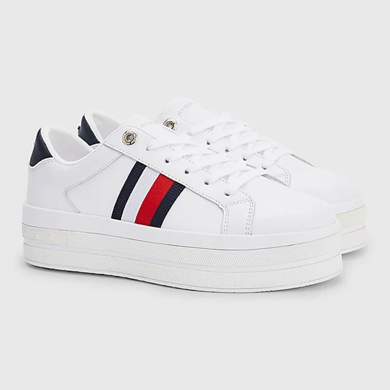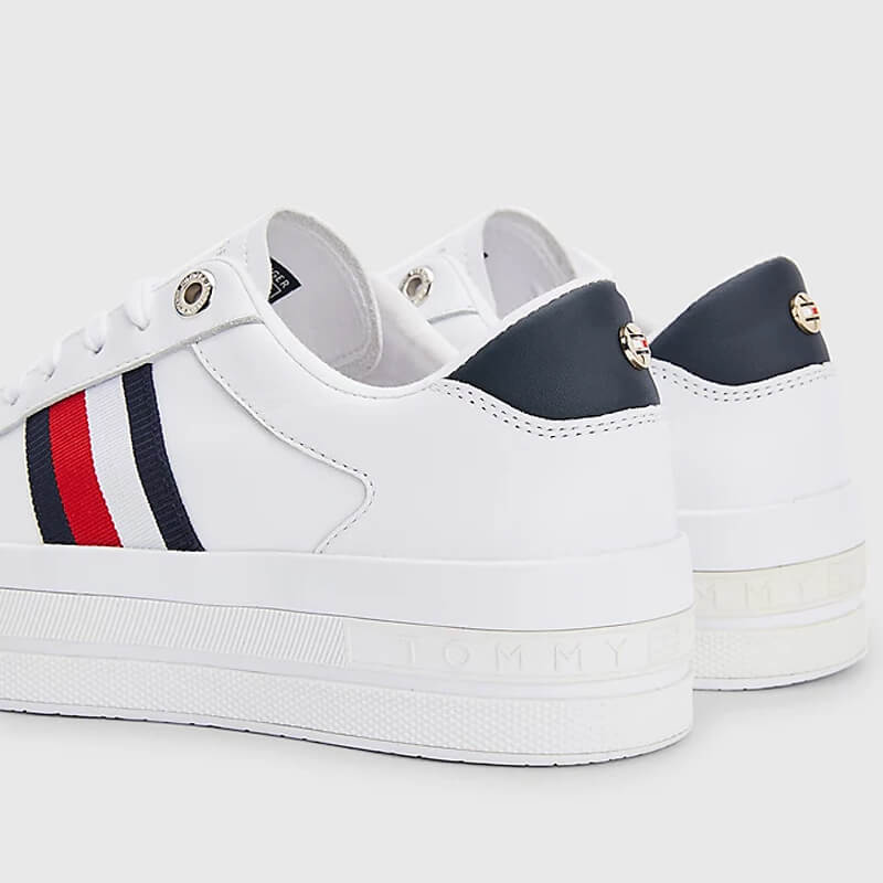 Sneaker με πλατφόρμα της Tommy Hilfiger με άνω μέρος από γνήσιο και οικολογικό δέρμα σε άσπρο χρώμα. Διαθέτει άνετο εσωτερικό πάτο και εξωτερική σόλα από καουτσούκ. Ένα κομψό παπούτσι για κάθε μέρα.