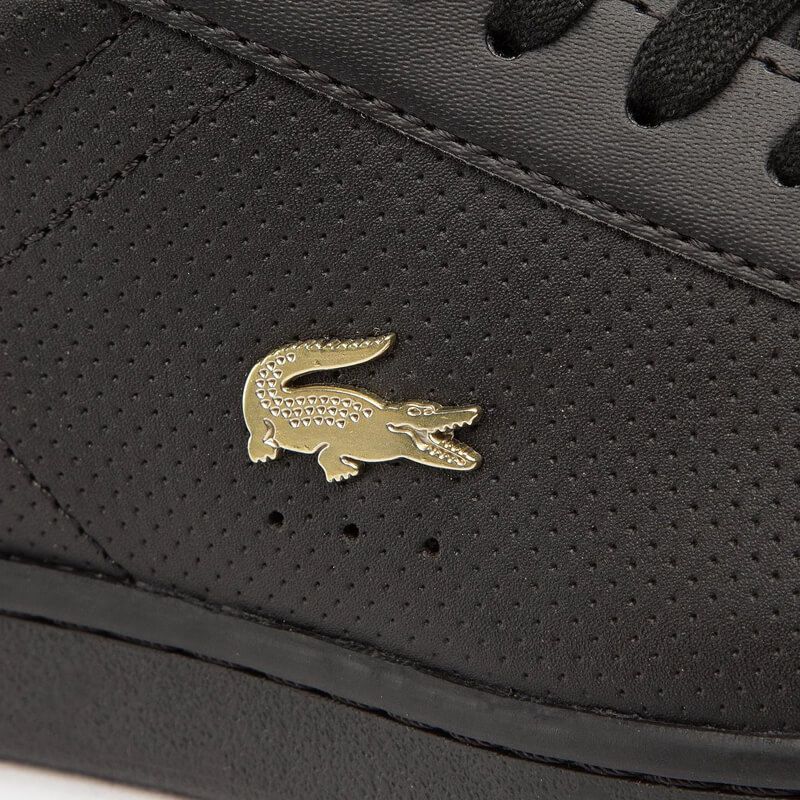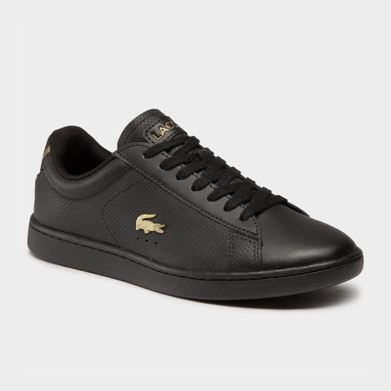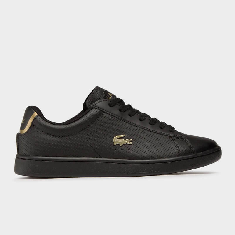 Sneaker της Lacoste με άνω μέρος από οικολογικό δέρμα σε μαύρο χρώμα με χρυσές λεπτομέρειες. Διαθέτει ανατομικό εσωτερικό πάτο ortholite και αντιολισθητική σόλα από καουτσούκ. Ένα άνετο και κομψό παπούτσι για κάθε μέρα.