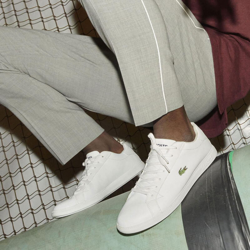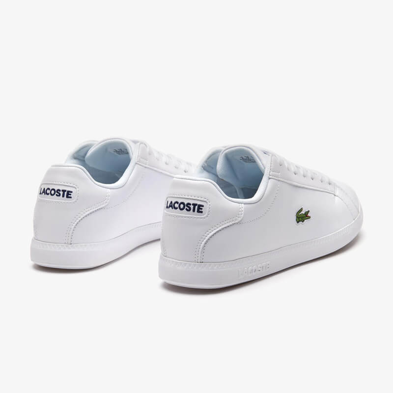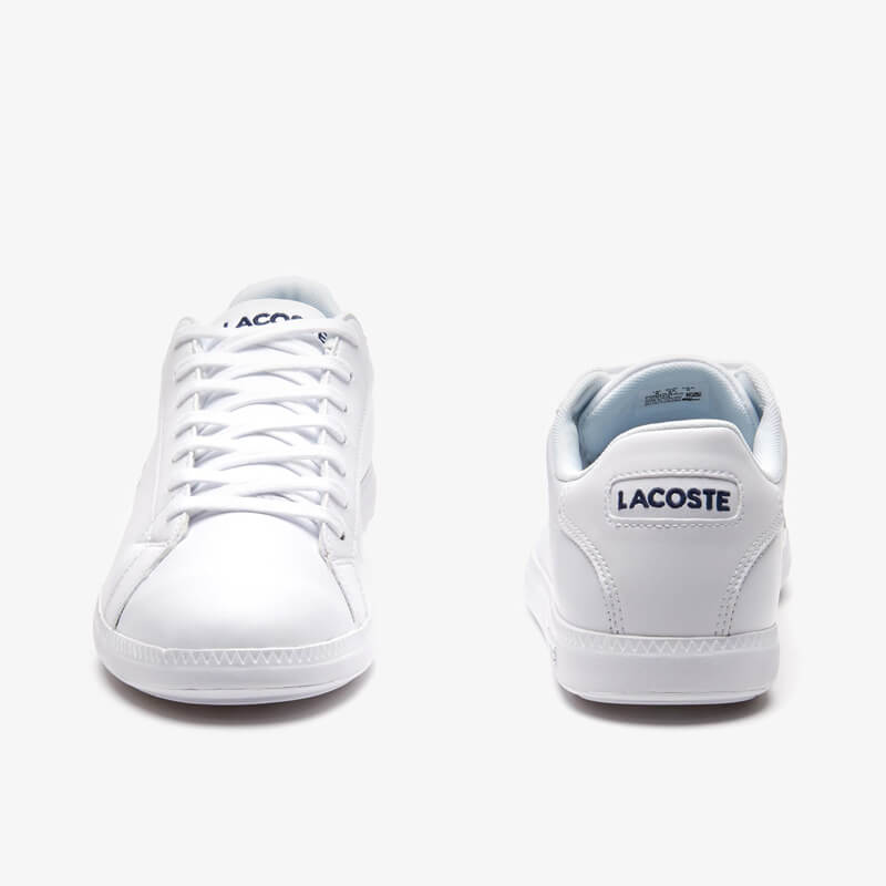 Χαμηλό sneaker της Lacoste από υψηλής ποιότητας δέρμα σε άσπρο χρώμα. Διαθέτει εσωτερικό πάτο Ortholite και ελαστική εξωτερική σόλα με αντιολισθητική δράση. Ένα κομψό και άνετο παπούτσι κατάλληλο για όλη την διάρκεια της ημέρας.