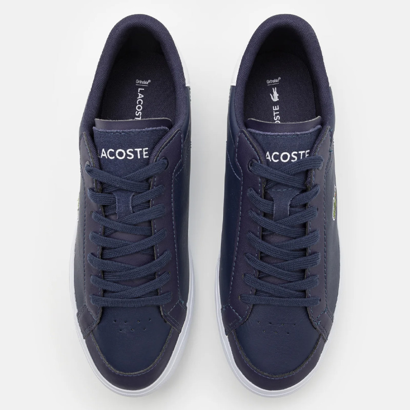 Τα Powercourt της Lacoste με έντονα ιστορικά στοιχεία, διακοσμημένα με καθαρές γραμμές και επενδύσεις από suede. Η αισθητική του Powercourt, εμπνευσμένη από το στυλ της Lacoste, συνδυάζει μοντέρνα στοιχεία με αθλητική αισθητική. Κατασκευασμένα από δέρμα στο άνω μέρος, φέρουν το λογότυπο της εταιρείας στη γλώσσα και στη φτέρνα, ενώ ο πάτος Ortholite προσφέρει άνεση και στήριξη. Η εξωτερική σόλα, κατασκευασμένη από καουτσούκ, εξασφαλίζει πρόσφυση και αντοχή, ενώ ο κροκόδειλος που κεντημένος στο πλάι αποτελεί διακριτική υπογραφή του brand.