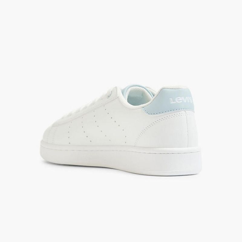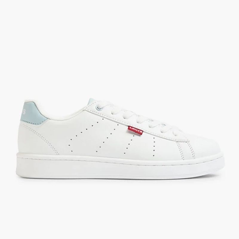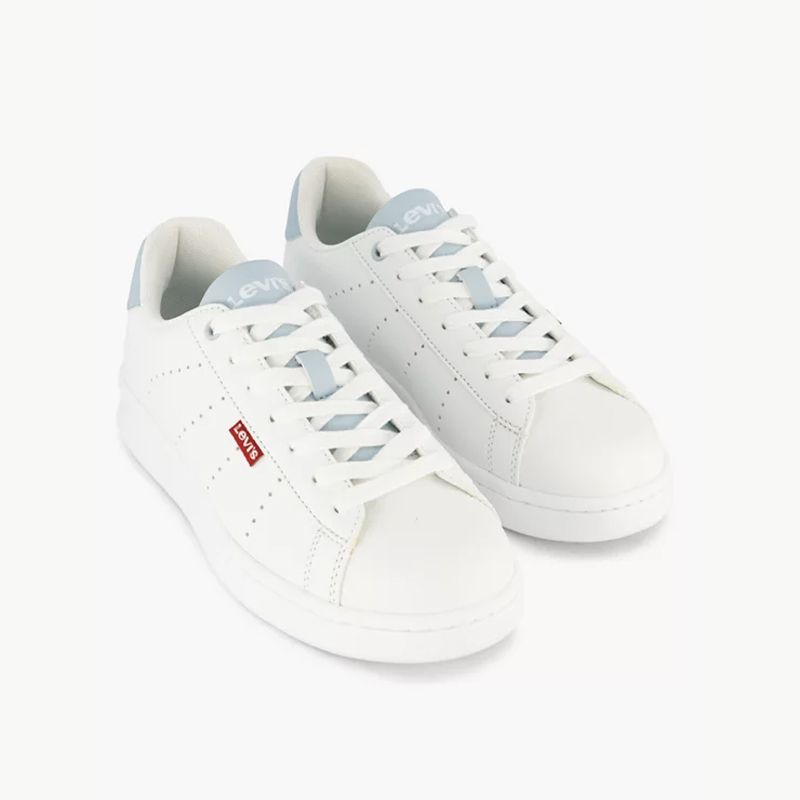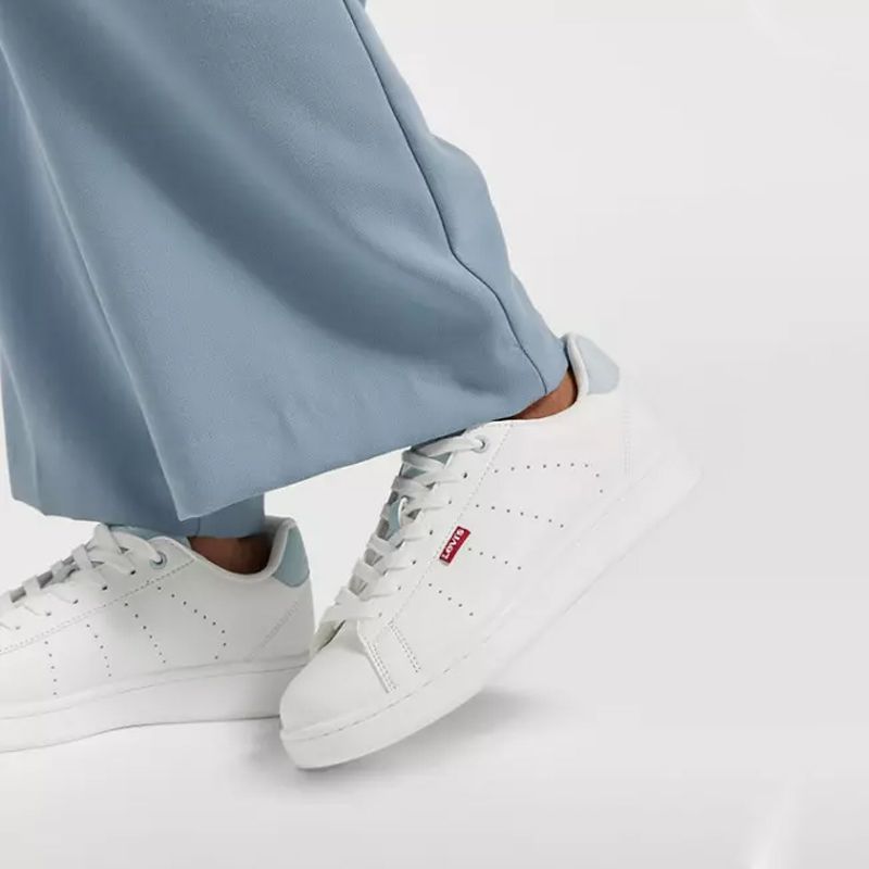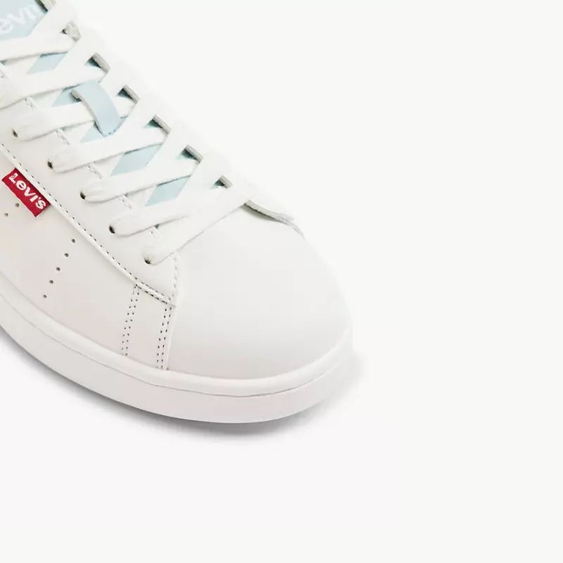 Sneaker της Levi’s με άνω μέρος από οικολογικό δέρμα σε άσπρο χρώμα με γαλάζιες λεπτομέρειες. Διαθέτει άνετο εσωτερικό πάτο και εξωτερική σόλα από καουτσούκ. Ένα casual παπούτσι για κάθε μέρα.
