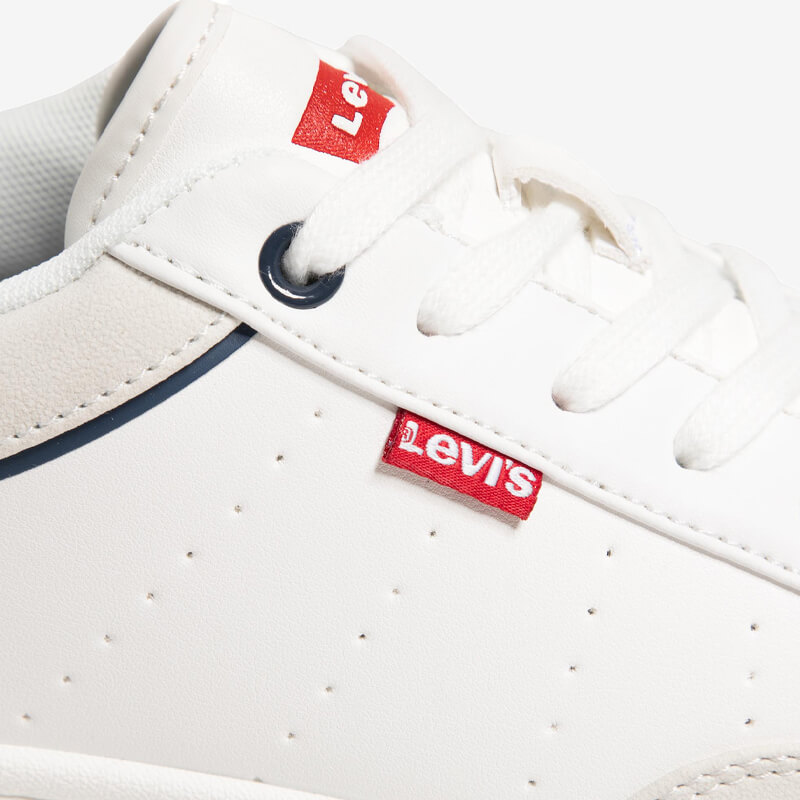 Sneaker με πλατφόρμα της Levi’s από οικολογικό δέρμα σε άσπρο χρώμα με μπεζ λεπτομέρειες. Έχει μαλακό εσωτερικό πάτο comfort tech και εξωτερική σόλα από υλικό υψηλής ποιότητας. Ένα άνετο sneaker για όλη την διάρκεια της ημέρας.